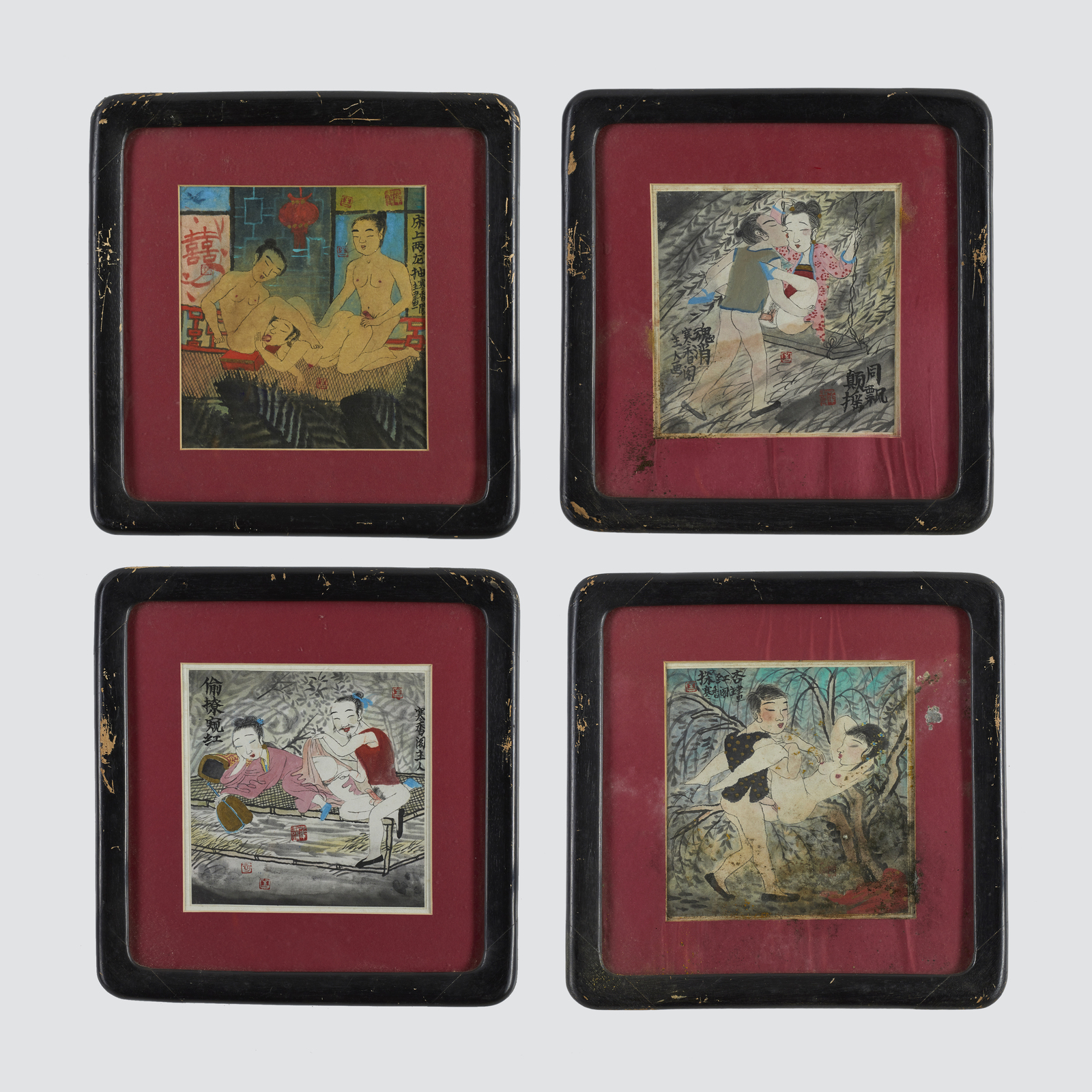 Arte Cinese - Gruppo di 8 dipinti a soggetto erotico. Cina, periodo Repubblica.