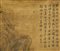 Cina, dinastia Qing, XVIII secolo . . Cm 44,00 x 149,00. Rotolo verticale su carta dipinto con scena di personaggi e edifici ai piedi di un'aspra montagna.