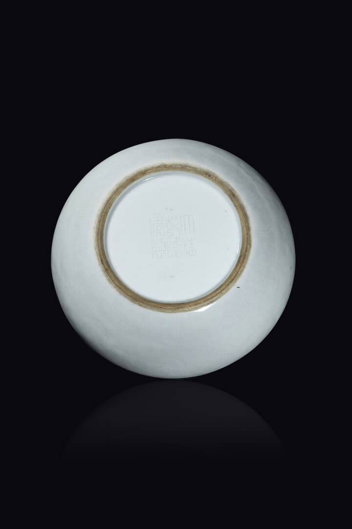 Sciacquapennelli circolare in porcellana bianca con decoro invisibile di draghi tra le nuvole, Cina, dinastia Qing, XIX sec