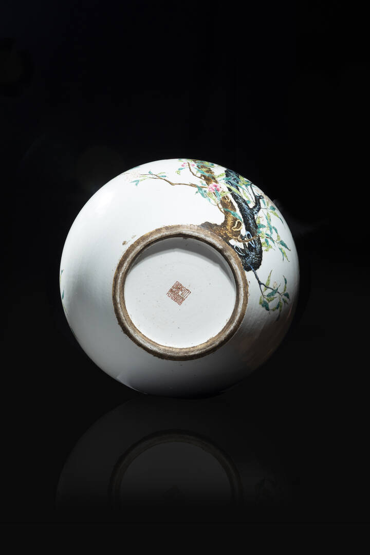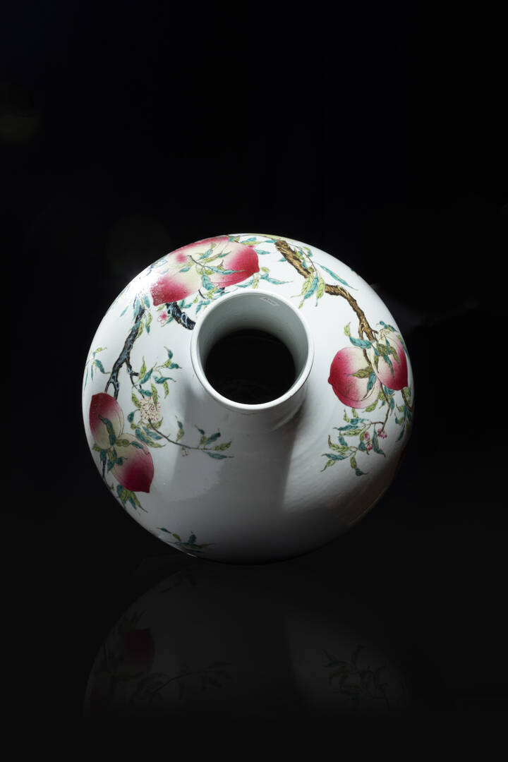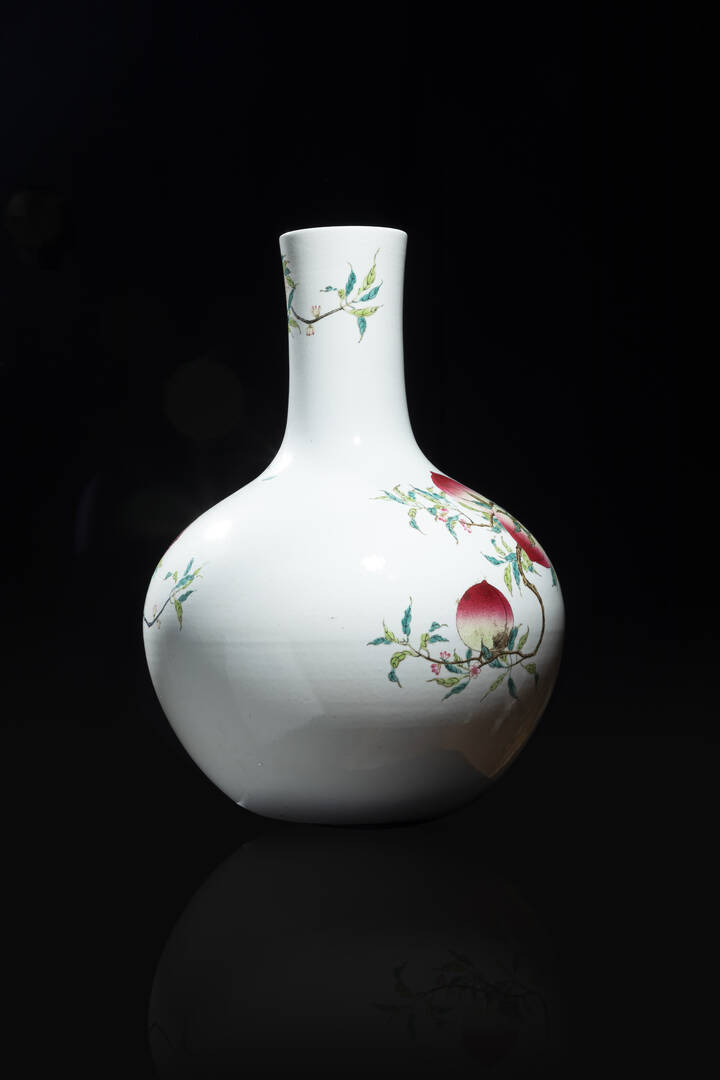 Vaso in porcellana a pallone con decoro di pesche, Cina, Repubblica, XX sec.