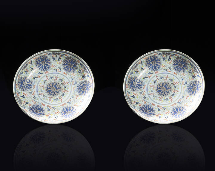 Coppia di piatti in porcellana Famiglia Rosa, Cina, dinastia Qing, epoca Guangxu (1871-1908)
