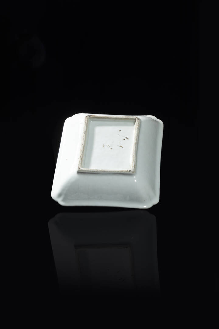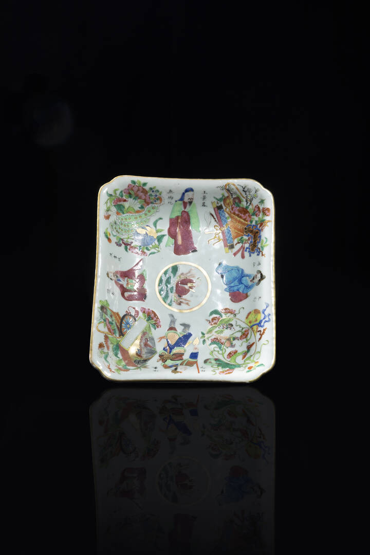 Piccolo vassoio in porcellana Famiglia Rosa dipinto con figure, Cina, dinastia Qing, XIX sec