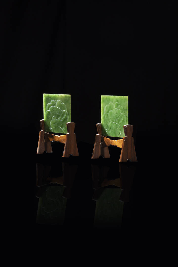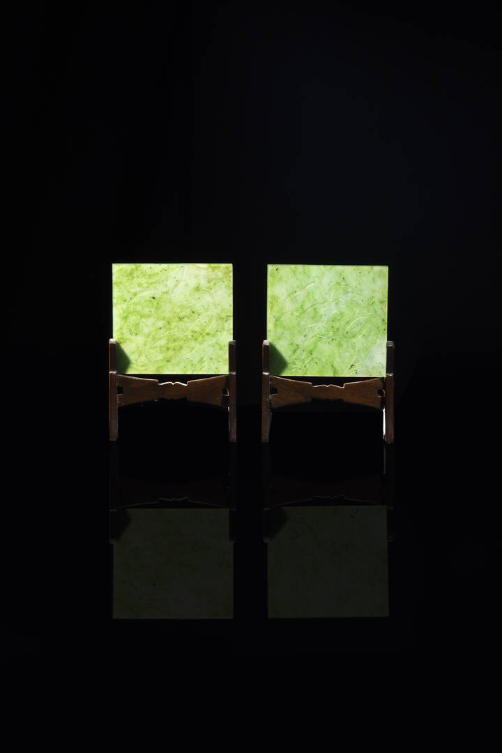 Coppia di paraventi in miniatura in giada spinacio, Cina, Repubblica, XX sec
