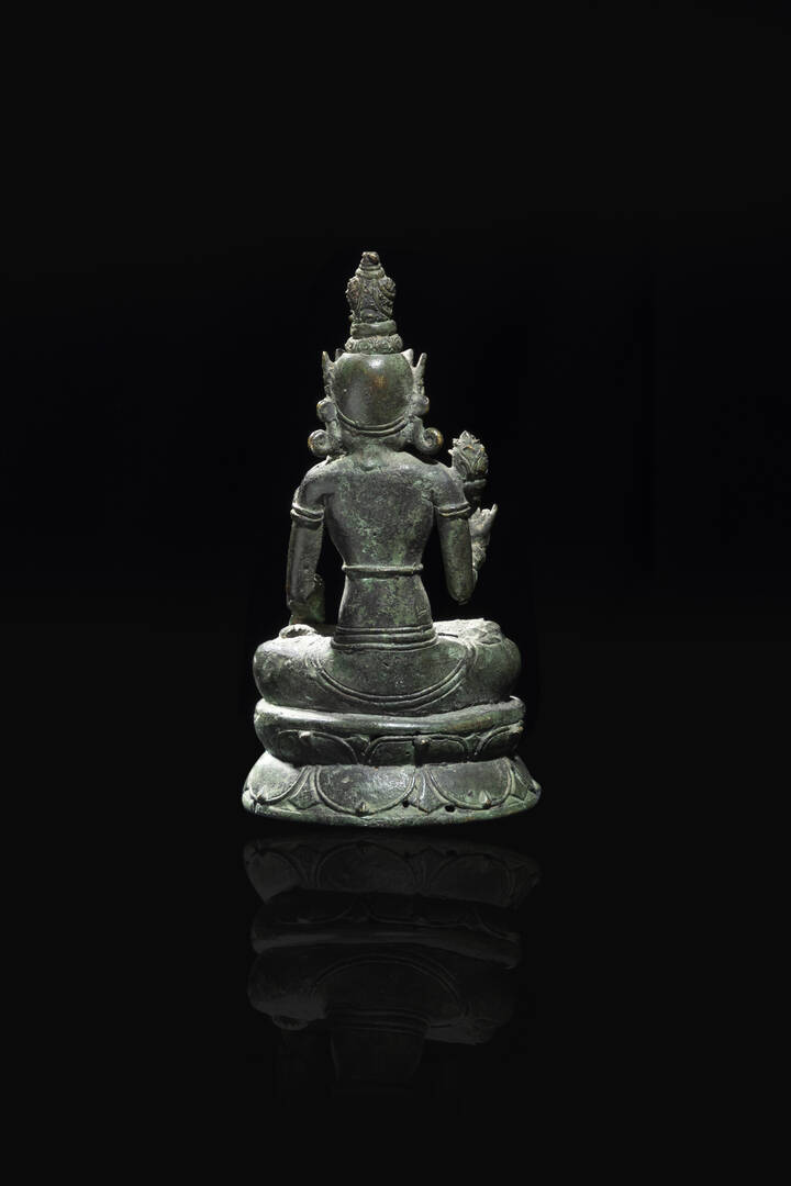 Buddha in bronzo brunito seduto nella posizione del loto, Tibet, XIX sec