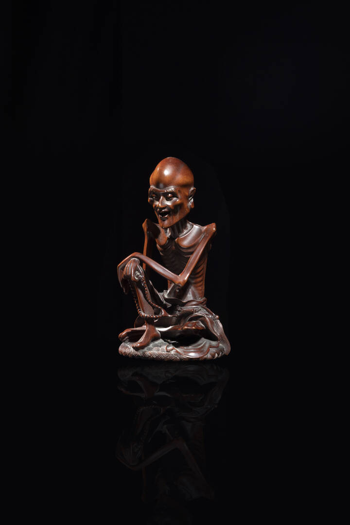 Figura di Buddha in digiuno in legno di sandalo, Cina, dinastia Qing, XX sec