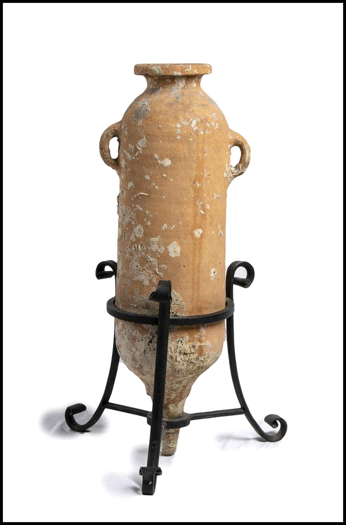 altezza anfora, comprensiva di supporto in ferro battuto, cm 77