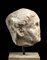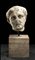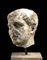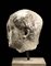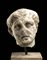 - Un ritratto appartenente ad un uomo maturo, imberbe, che mostra tratti fortemente individualizzati. L’età avanzata del personaggio viene messa in evidenza da profonde rughe che percorrono la fronte, indicate da due incisioni parallele ondulate e da larghi solchi naso labiali. Gli occhi sono grandi, asimmetrici, contornati da spesse palpebre. Il mento è appuntito, la bocca è sottile, poco dischiusa. Leggermente reclinata verso destra, questa testa conserva anche tracce della capigliatura sul lato sinistro dove le ciocche, più corpose che sulla sommità del capo, sono rese con incisioni parallele piuttosto regolari. Patina intonsa, con incrostazioni calcaree.
