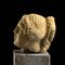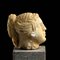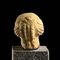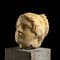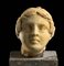 Piccola testa femminile, probabilmente raffigurante la dea Afrodite con un' elaborata acconciatura. Scultura di stile provinciale in marmo bianco a cristalli piuttosto grossi, con bella patina giallo-dorata.