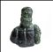 Piccola scultura in bronzo lavorata al bulino, raffigurante un Ercole maturo e barbato, ormai stanco al termine delle fatiche, con la pelle del Leone di Nemea poggiata sulla spalla sinistra. Probabile elemento di fibula, perno sul retro. Patina verde scura lucida.