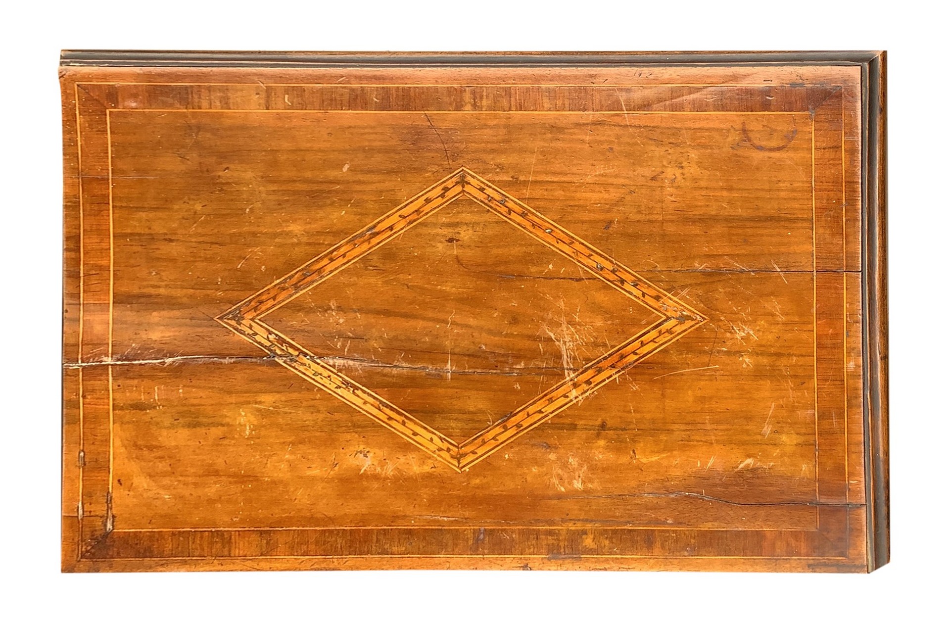 Lotto 16 | Comodino a due cassetti tardo Luigi XVI in legno di noce con losanghe al fronte, al piano e ai lati e piedi tronco piramidali, 19° secolo