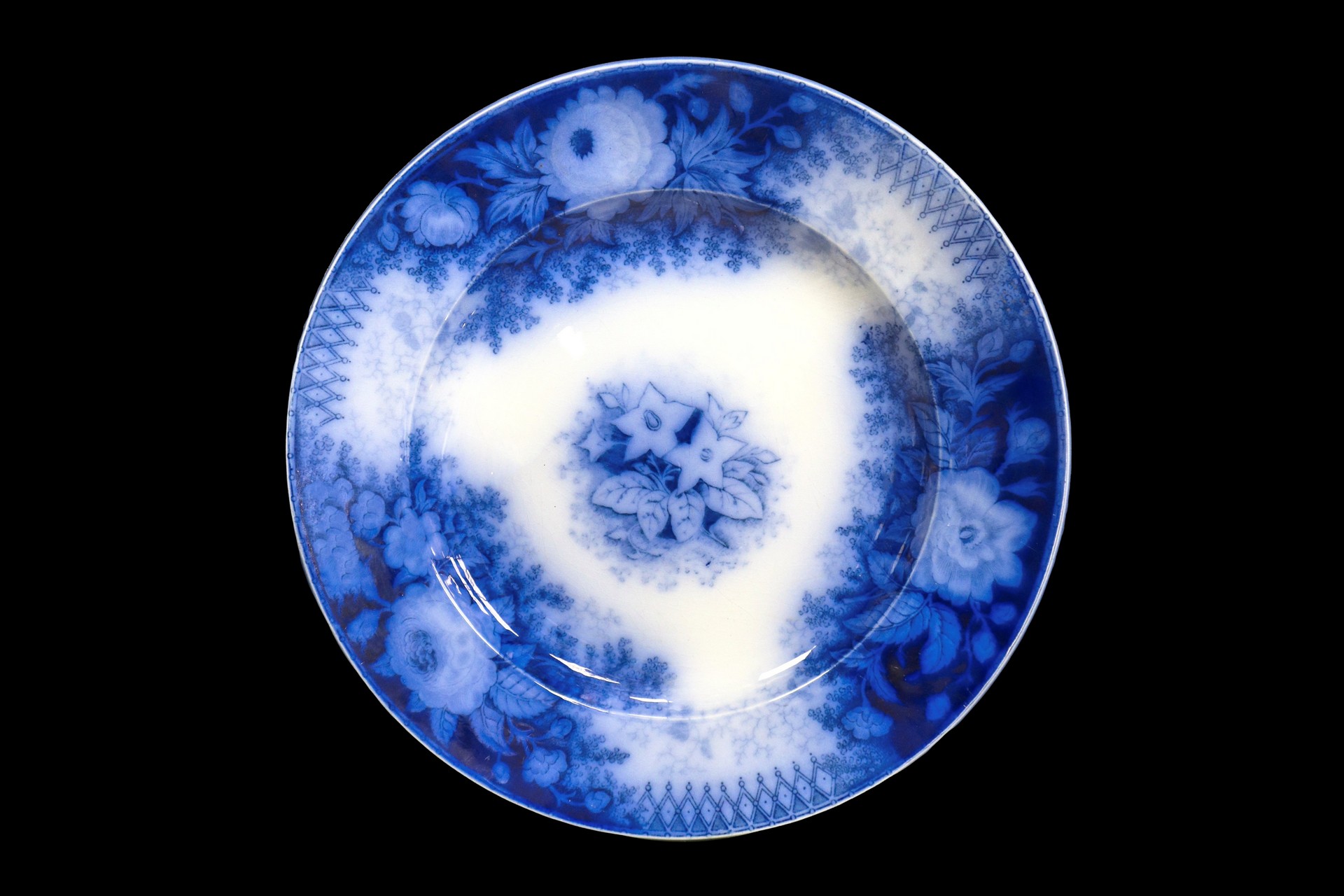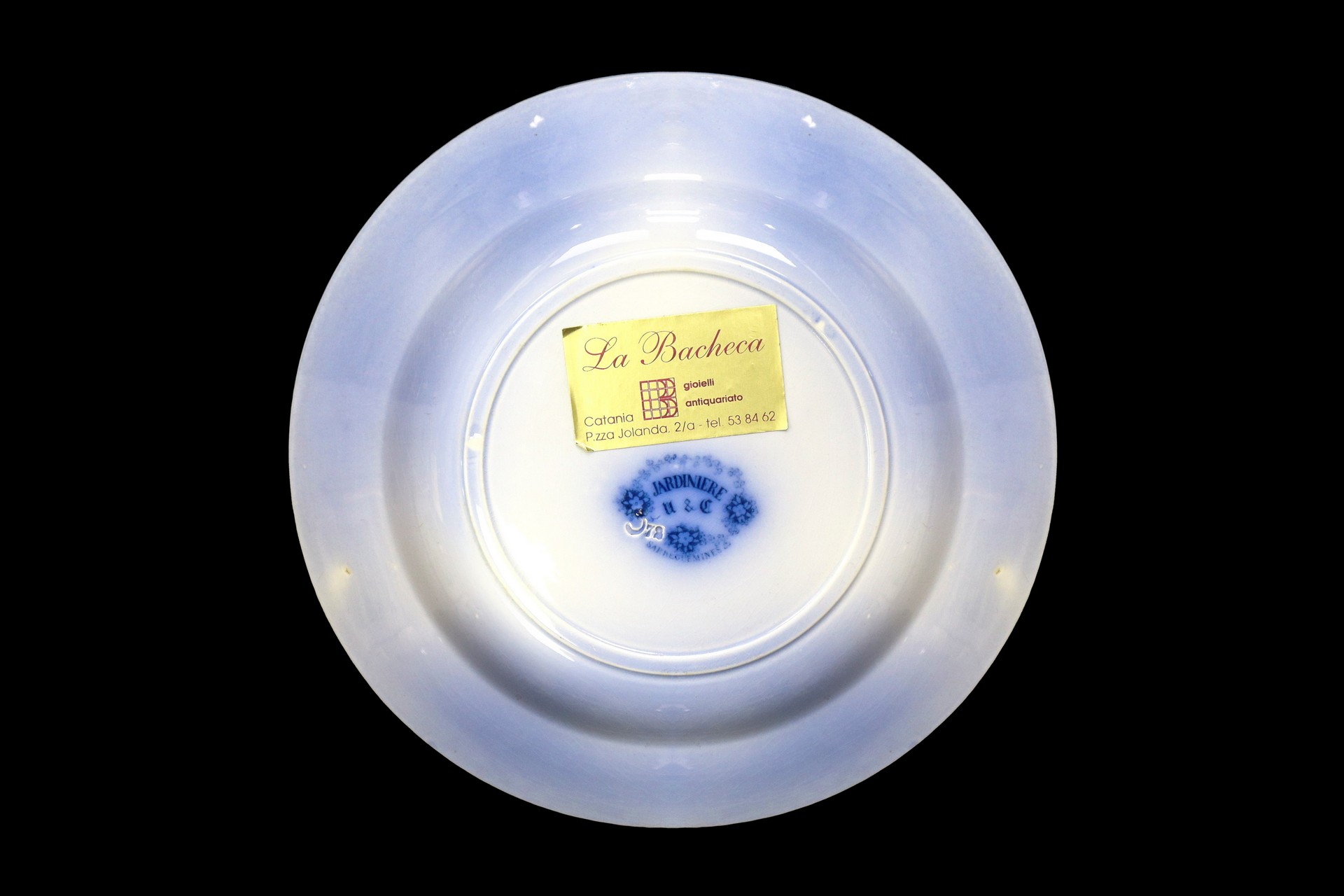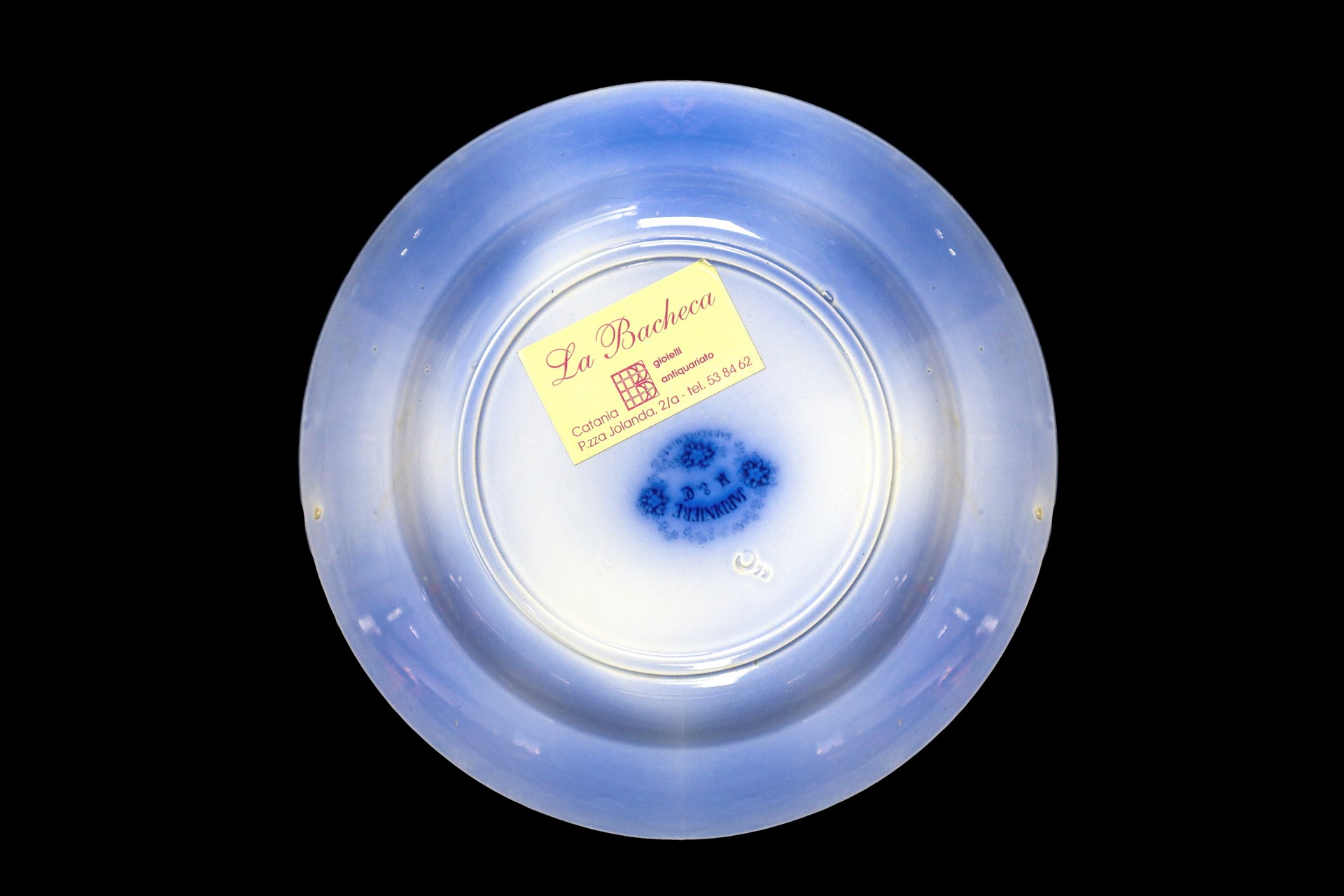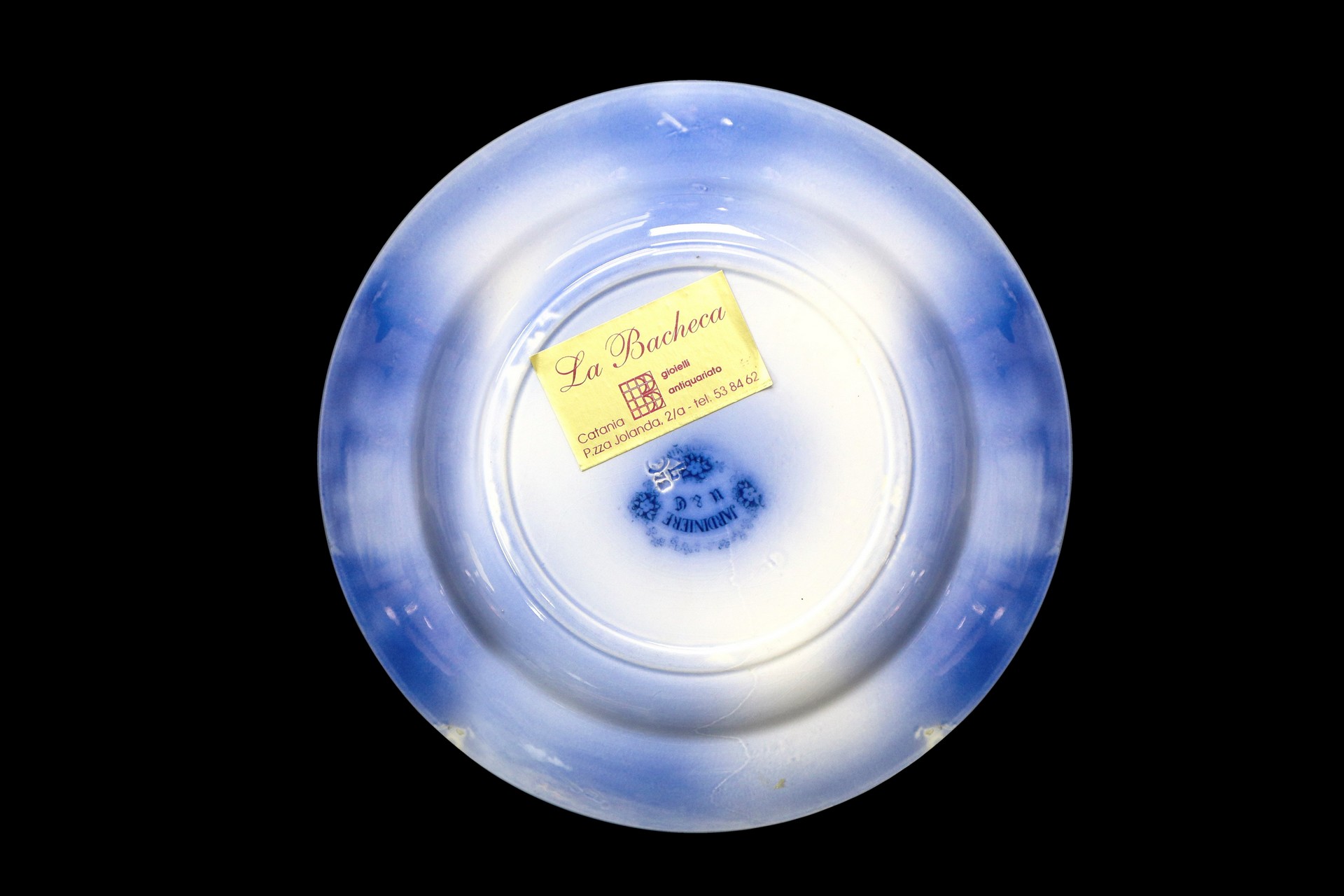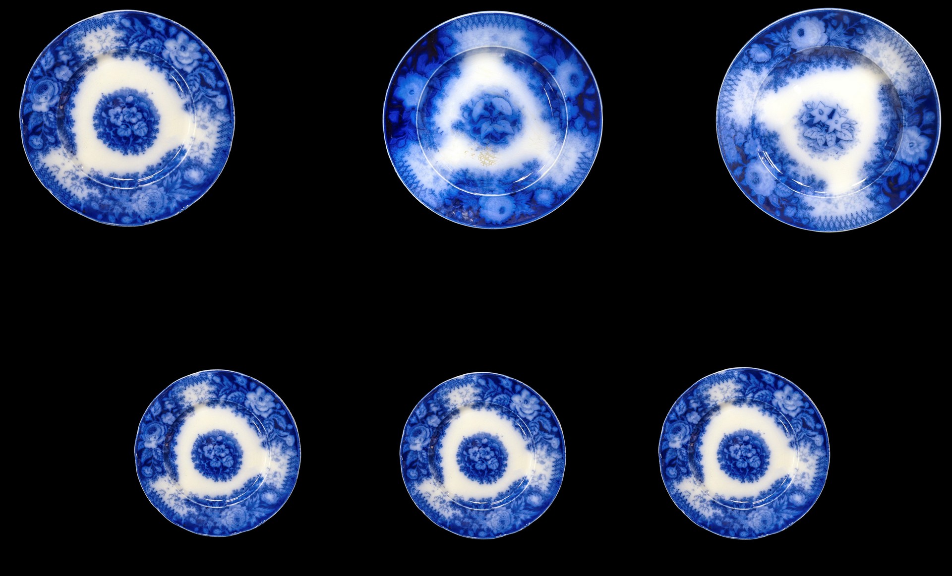 Jardiniere Sarreguemines (1784) - Gruppo di N. 6 piatti decorativi con decorazioni floreali nei toni del blu Grande D cm 23, piccoli diametro 20