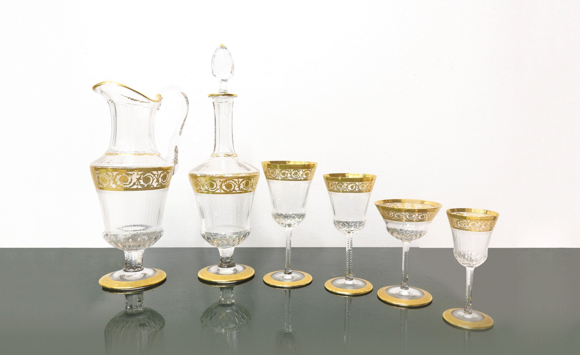 St.Louis - Servizio di N. 48 bicchieri e bottiglie, decoro 'THISTLE GOLD', 20° secolo