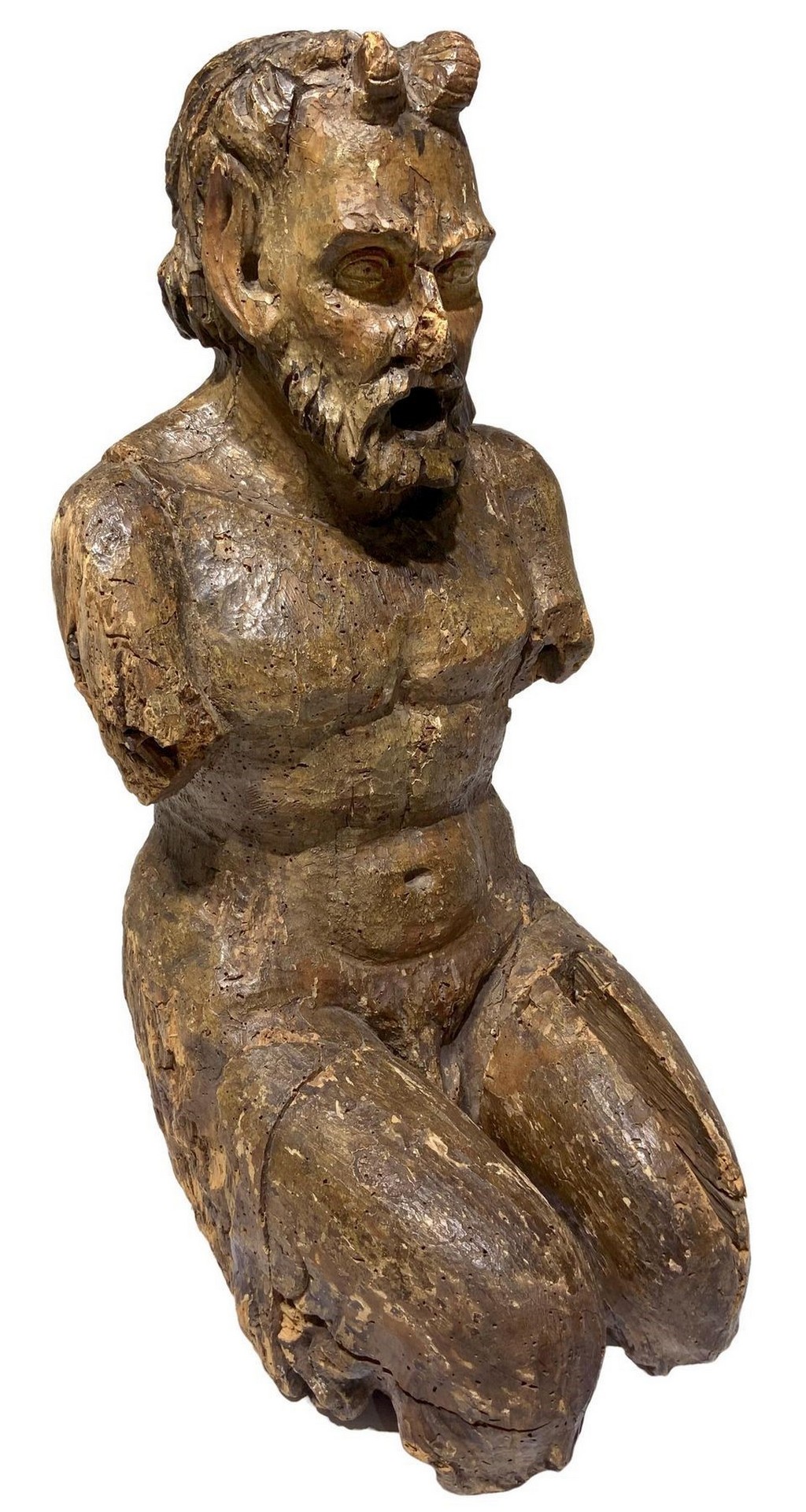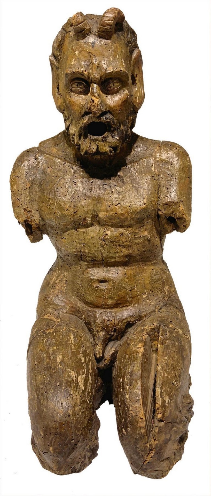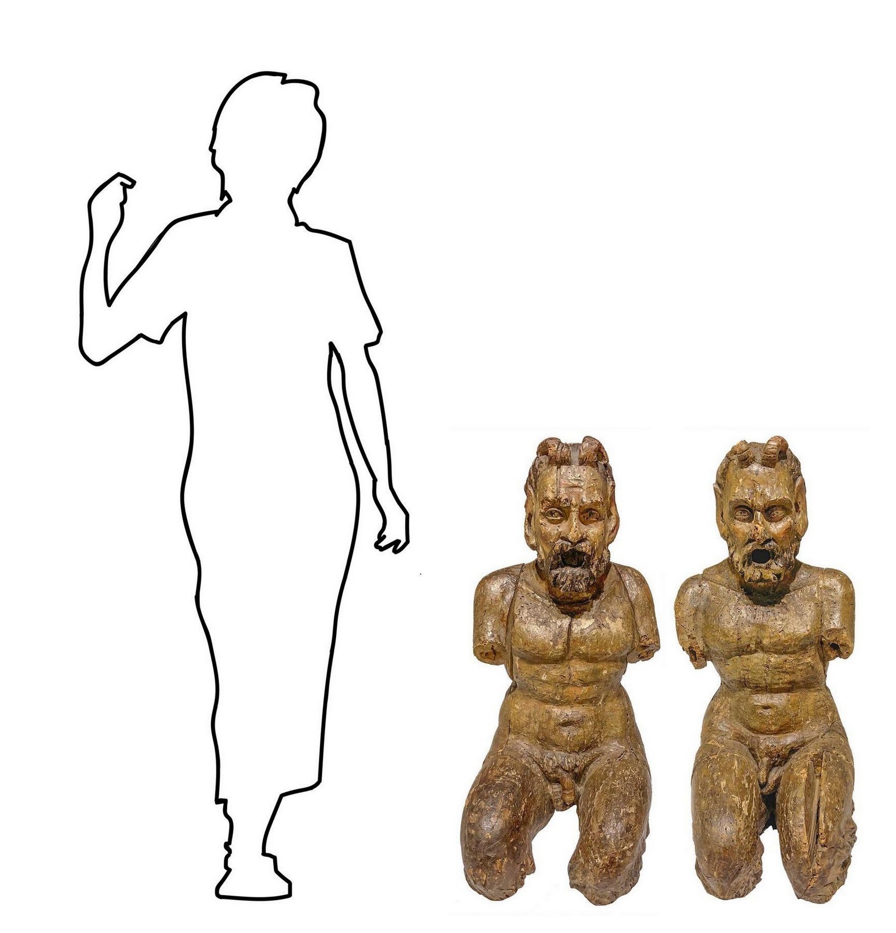 Coppia di Satiri, XVI secolo h cm 72 Scultore del XVI secolo, provenienza importante palazzo palermitano.Scultore del XVI secolo, provenienza importante palazzo palermitano.