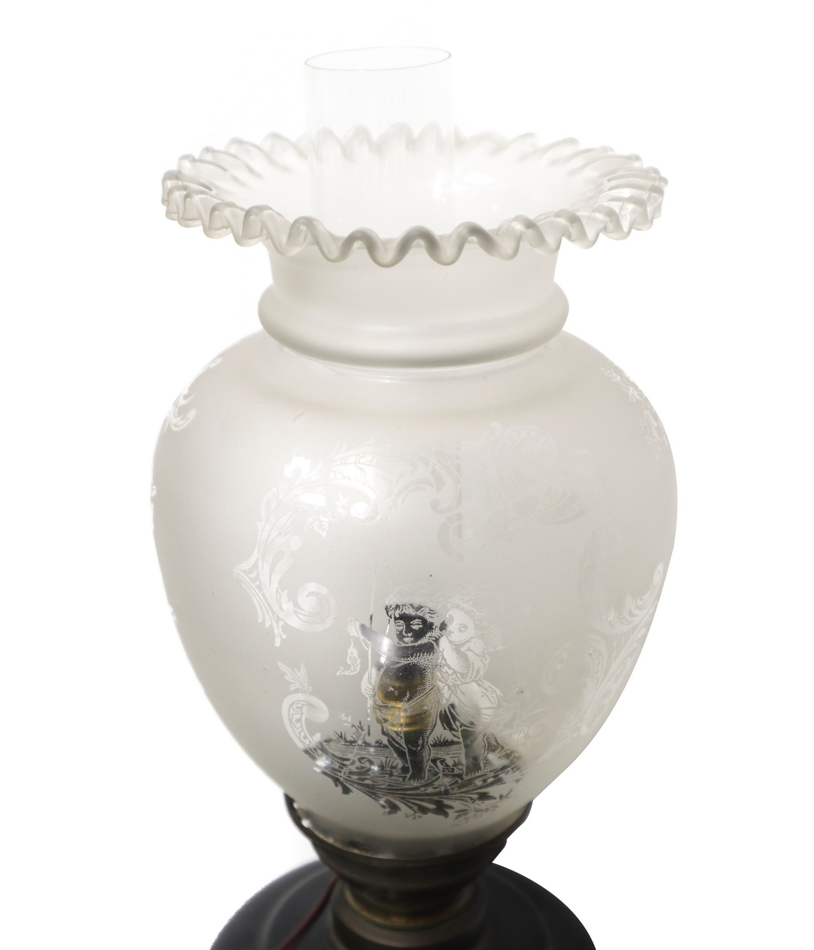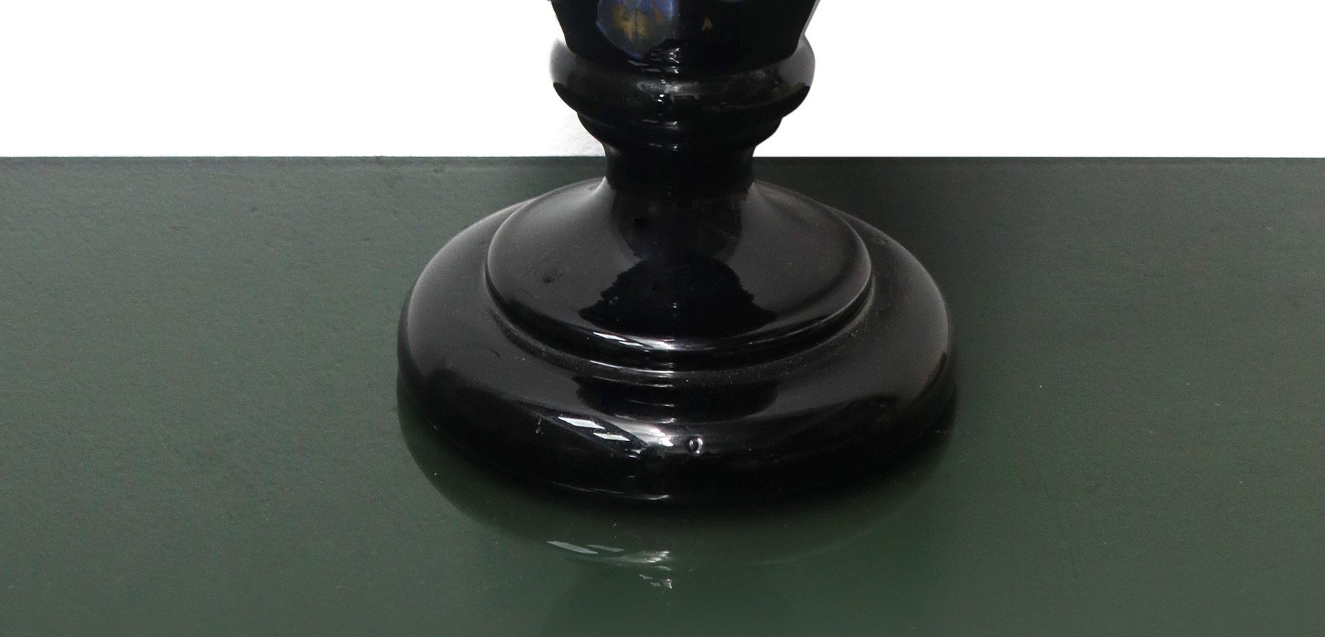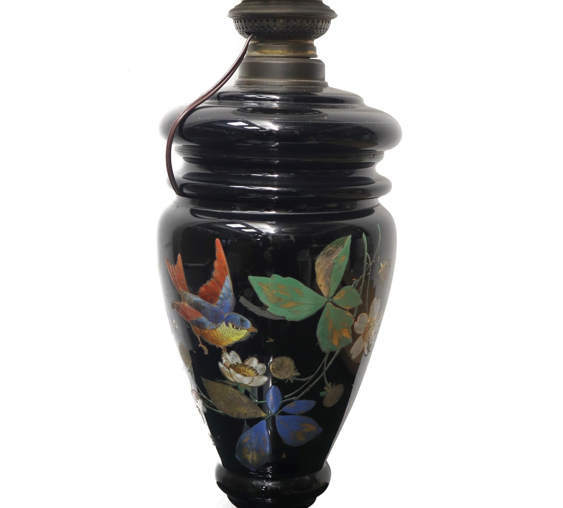 Lume in maiolica nei toni del nero con fiori e uccello, 20° secolo H 66 cm x L 15 cm