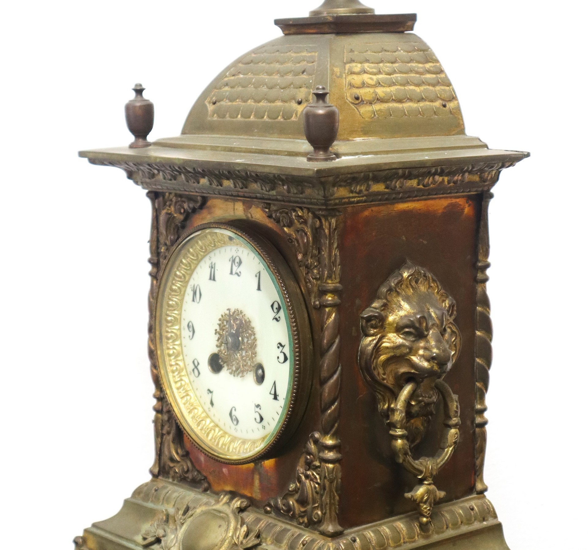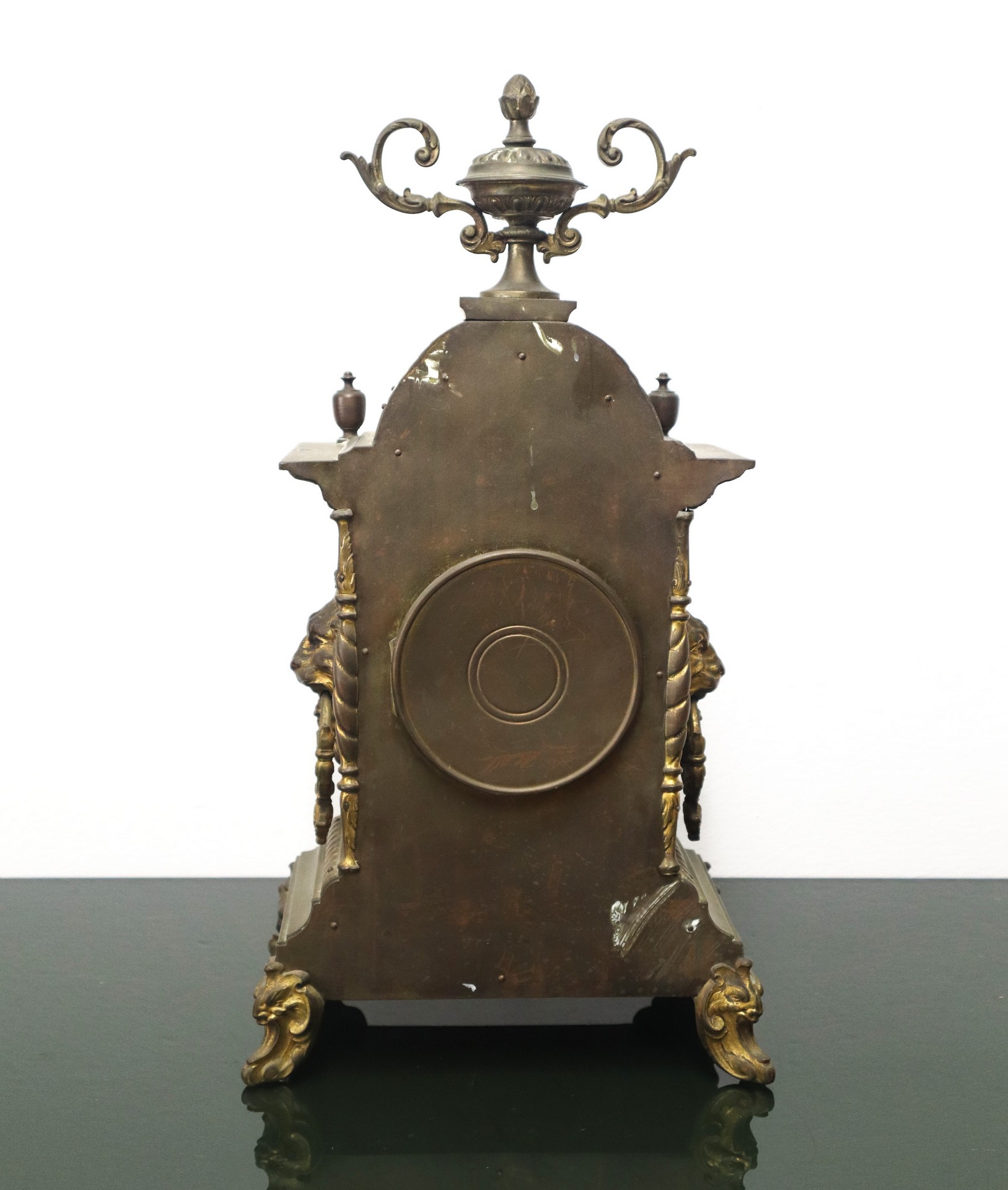 Orologio da tavolo a pendolo. In metallo dorato con quadrante in porcellana , Late 19° secolo h cm 45 x cm 24 x cm 16 Da revisionareDa revisionare