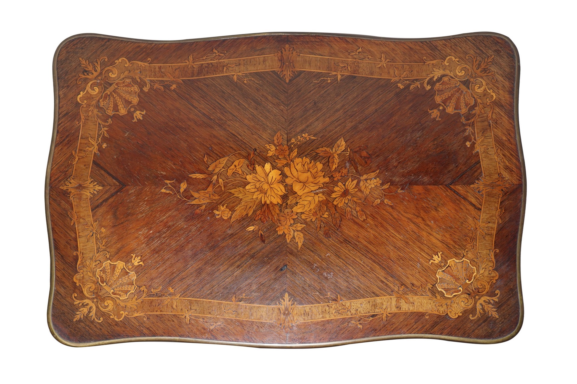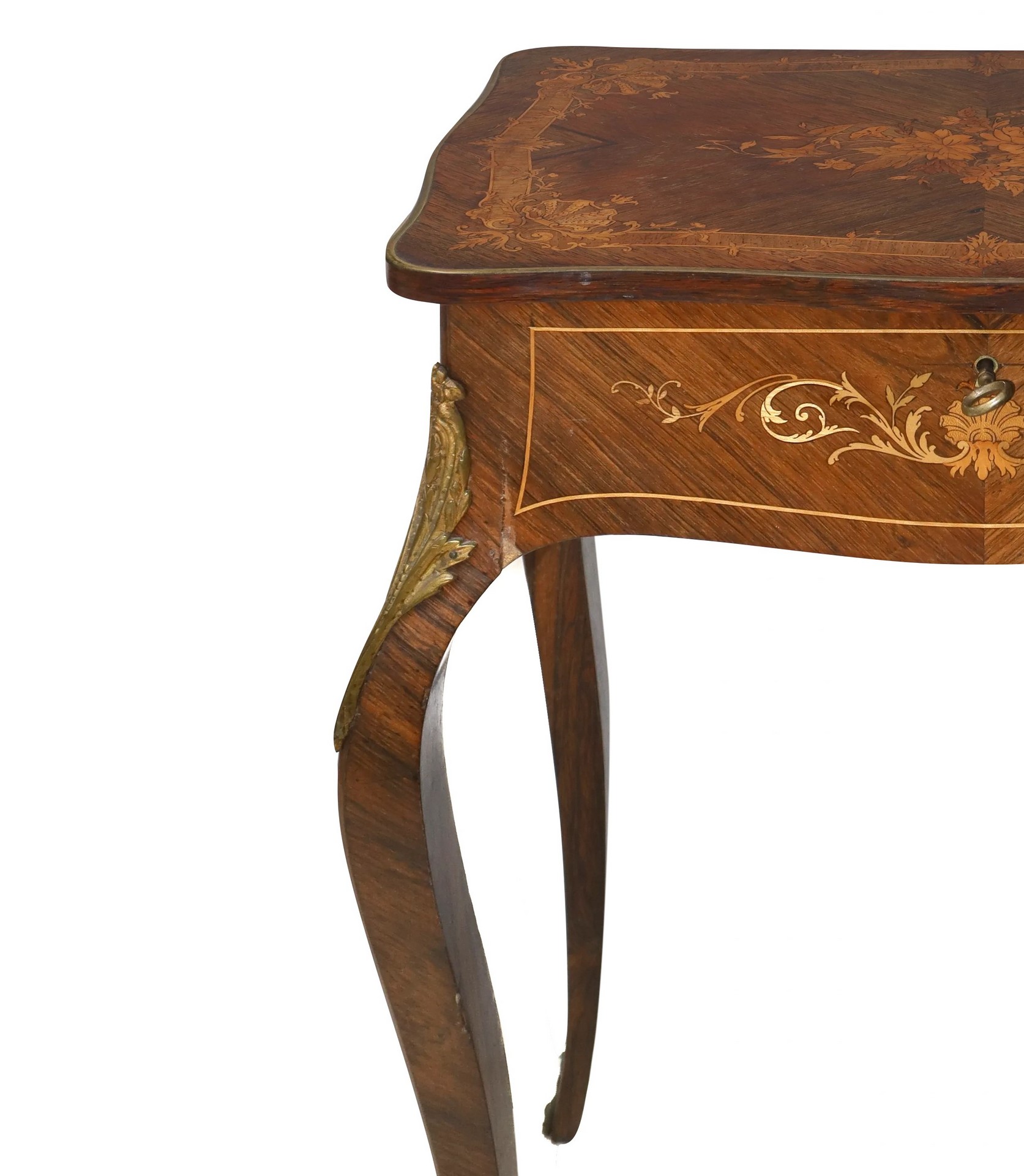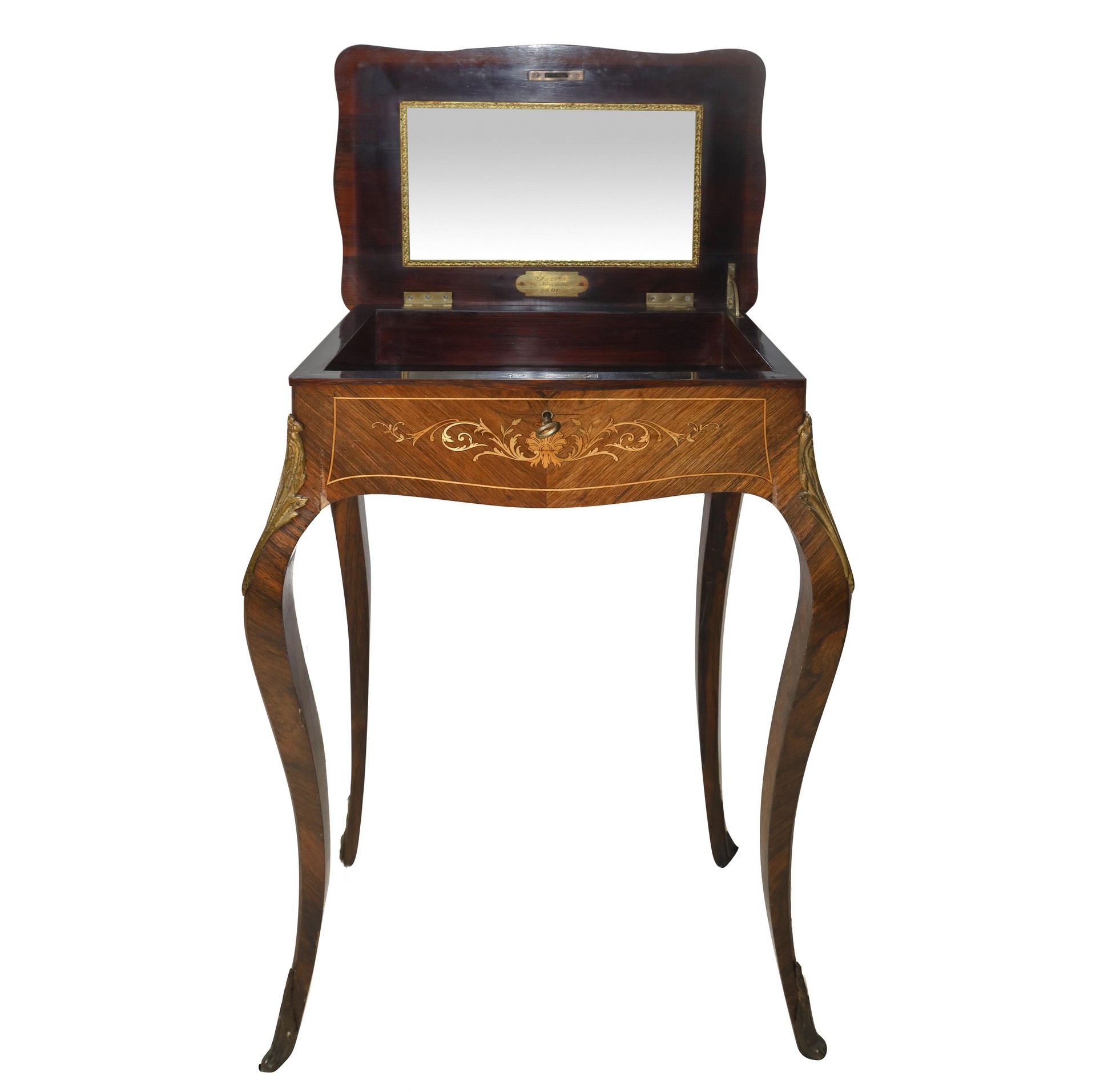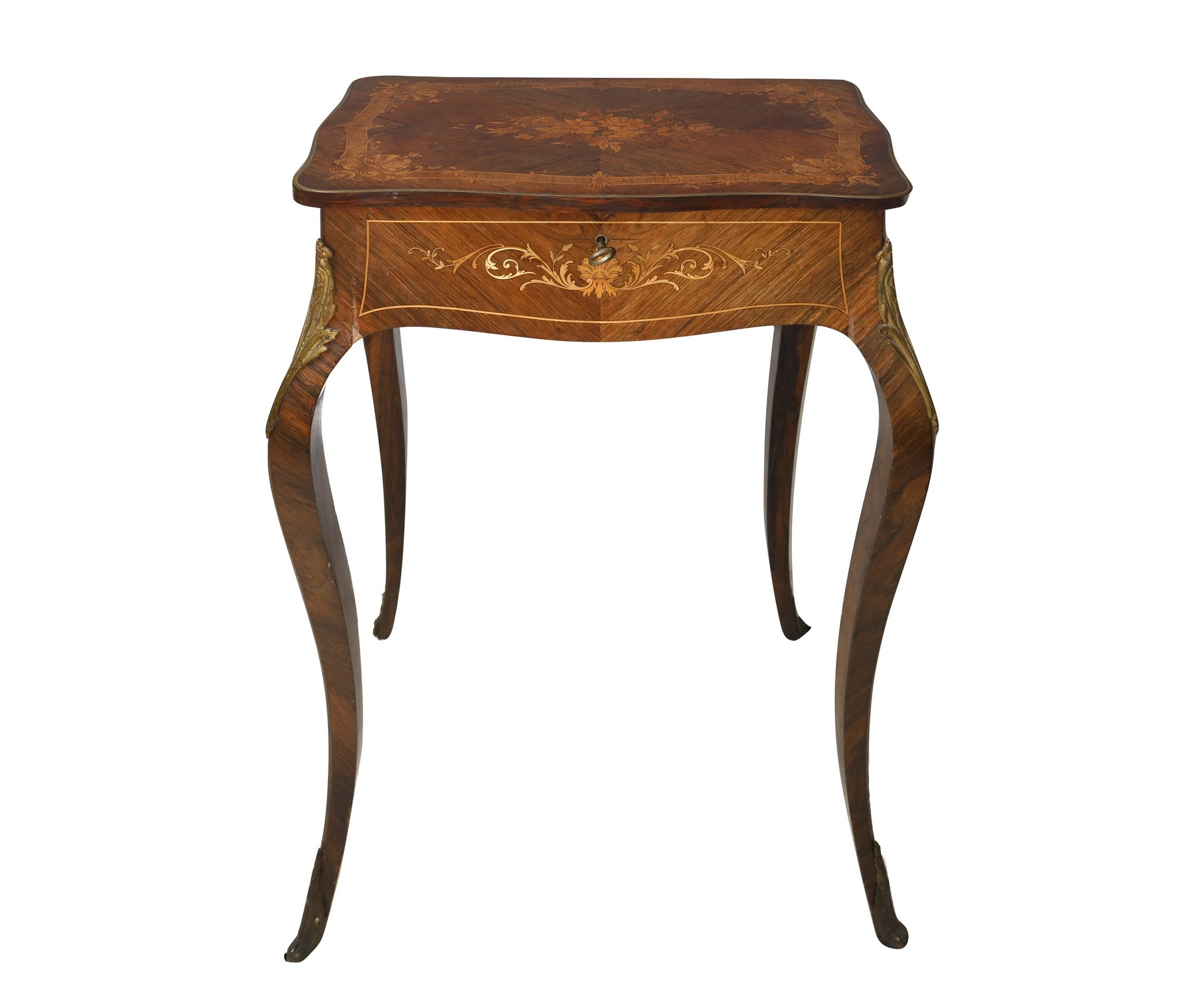 Tavolinetto da lavoro , 19° secolo h cm 73x54x37 Con intarsi al pianoCon intarsi al piano