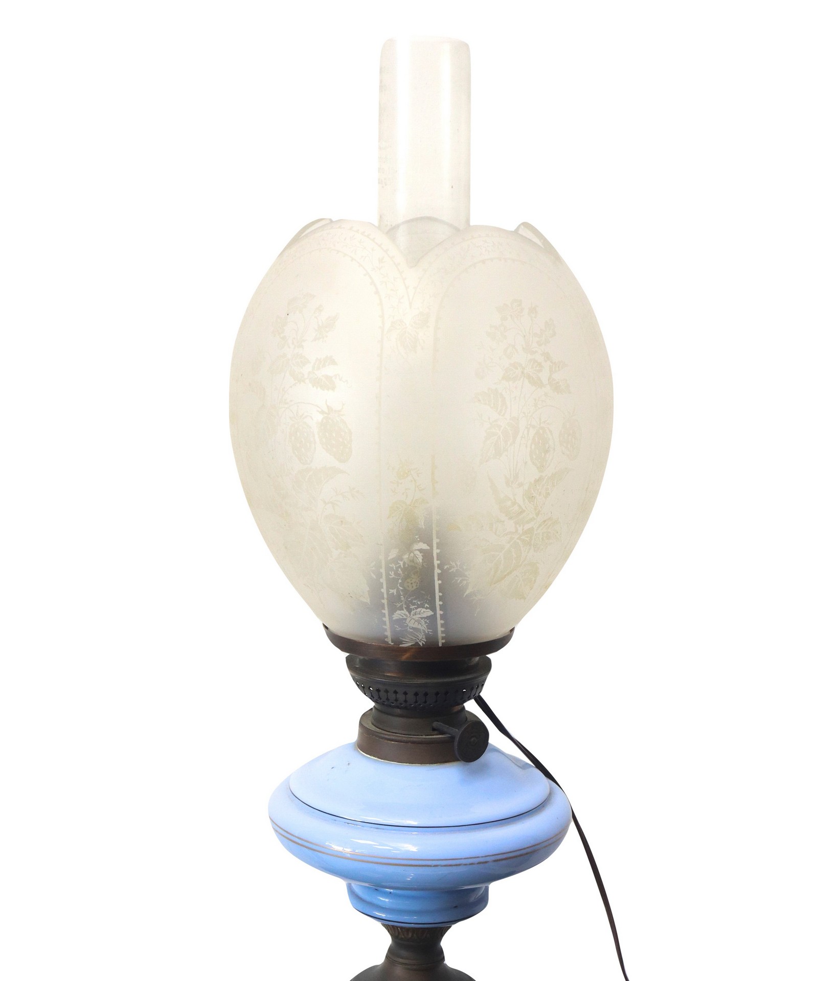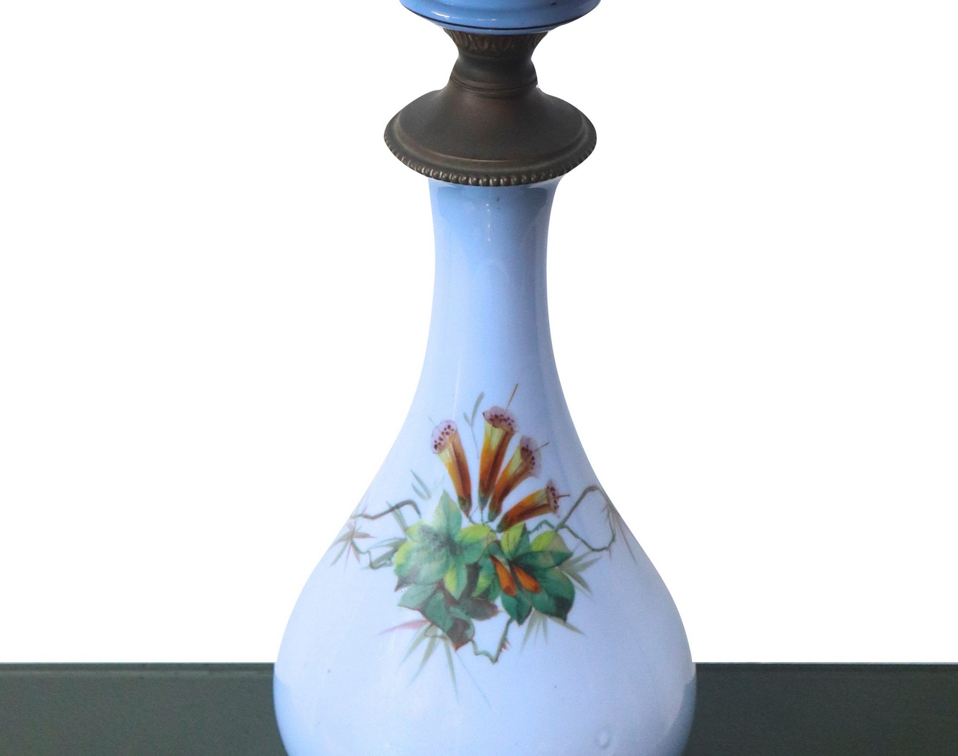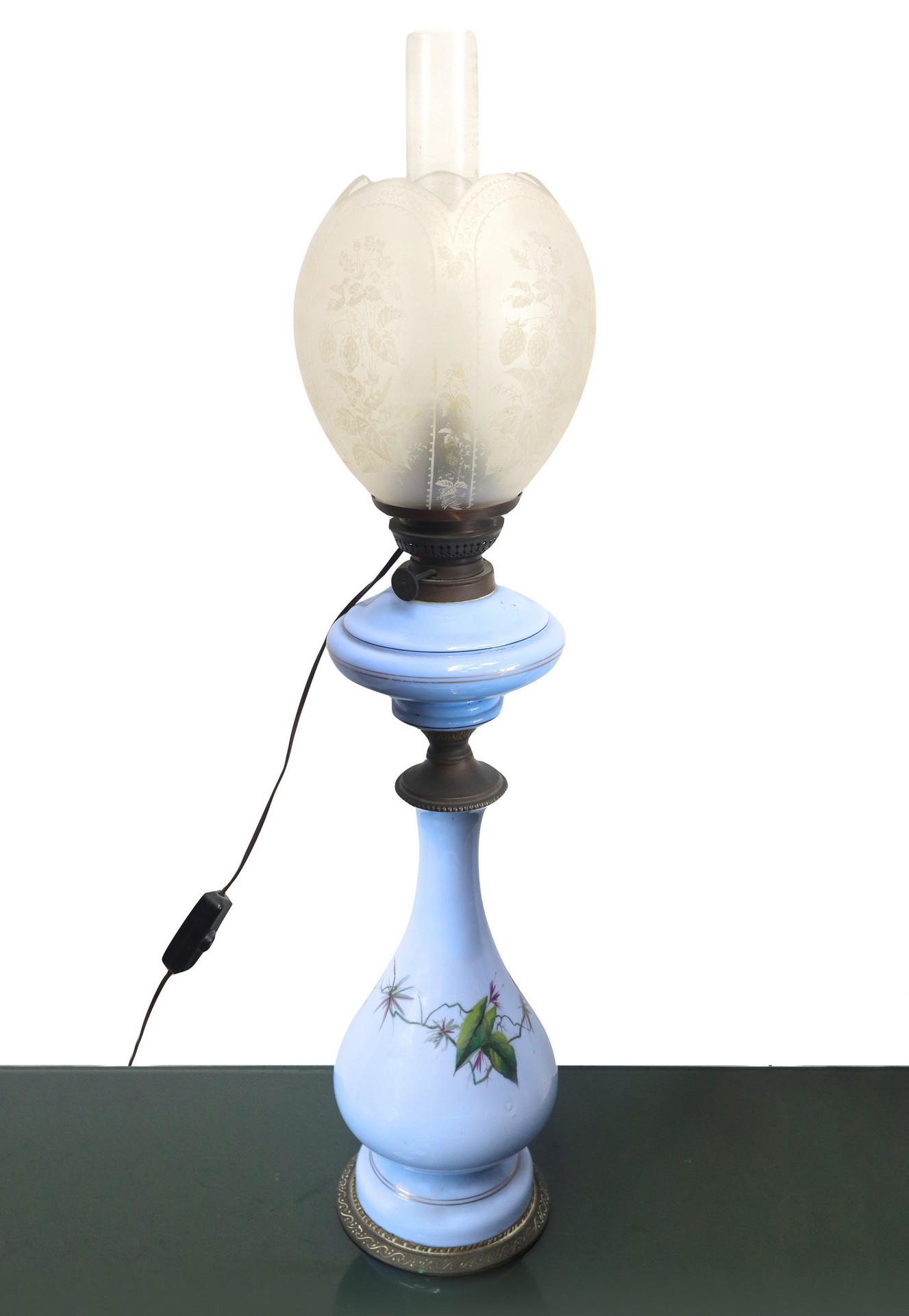 Lume nei toni dell'azzurro con decorazione floreale, Early 20° secolo H cm 75 Elettrificato.Elettrificato.