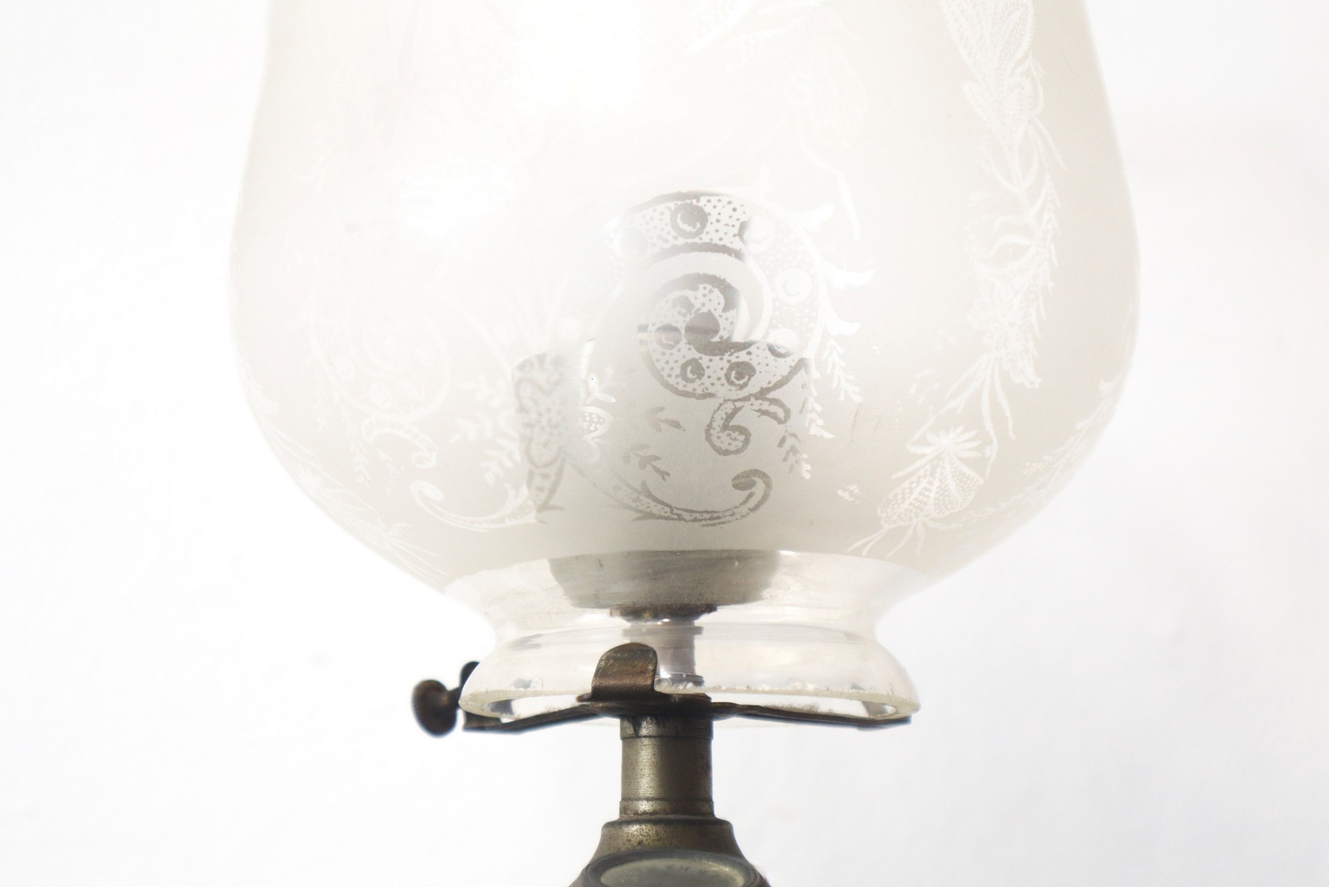 Base in metallo argentato e porcellana con motivi floreali, elettrificato.