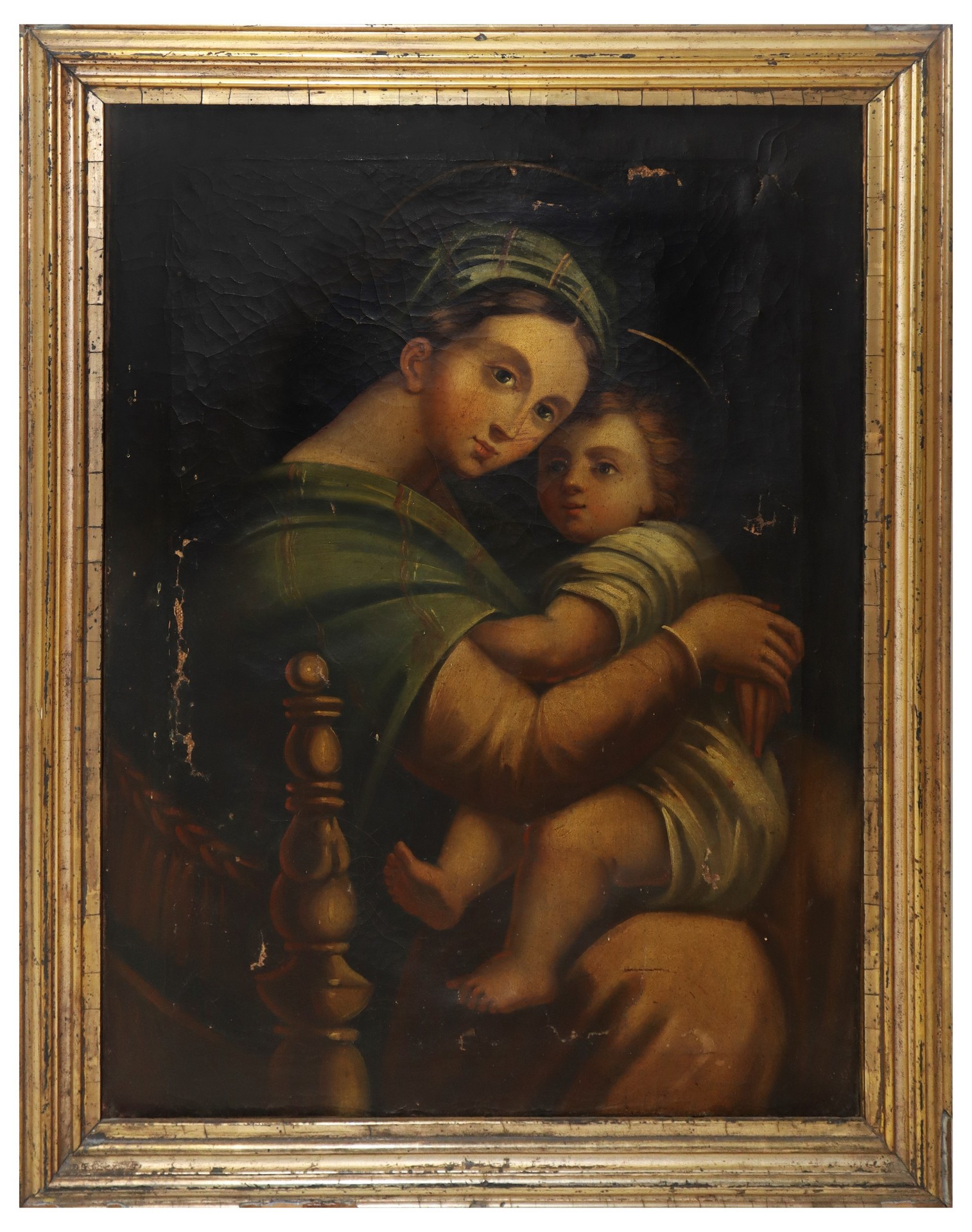 Madonna della seggiola con Bambino Gesù, da Raffaello, Italy, late 19° secolo Cm 53x40, in cornice 60x48 Dipinto ad olio su tela Cadute di colore.
