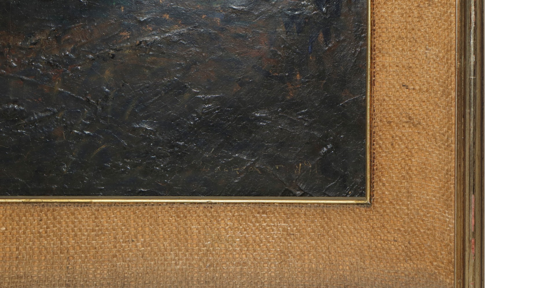 Mulino, 1891 H cm 72 x L cm 92, in cornice H cm 86 x L cm 107 Dipinto ad olio su tela Firmato in basso a destra e datato 1891. Sul retro etichetta "Raccolta Privata Principe Ottavio D'Aragona". Piccolo restauro sul retro
