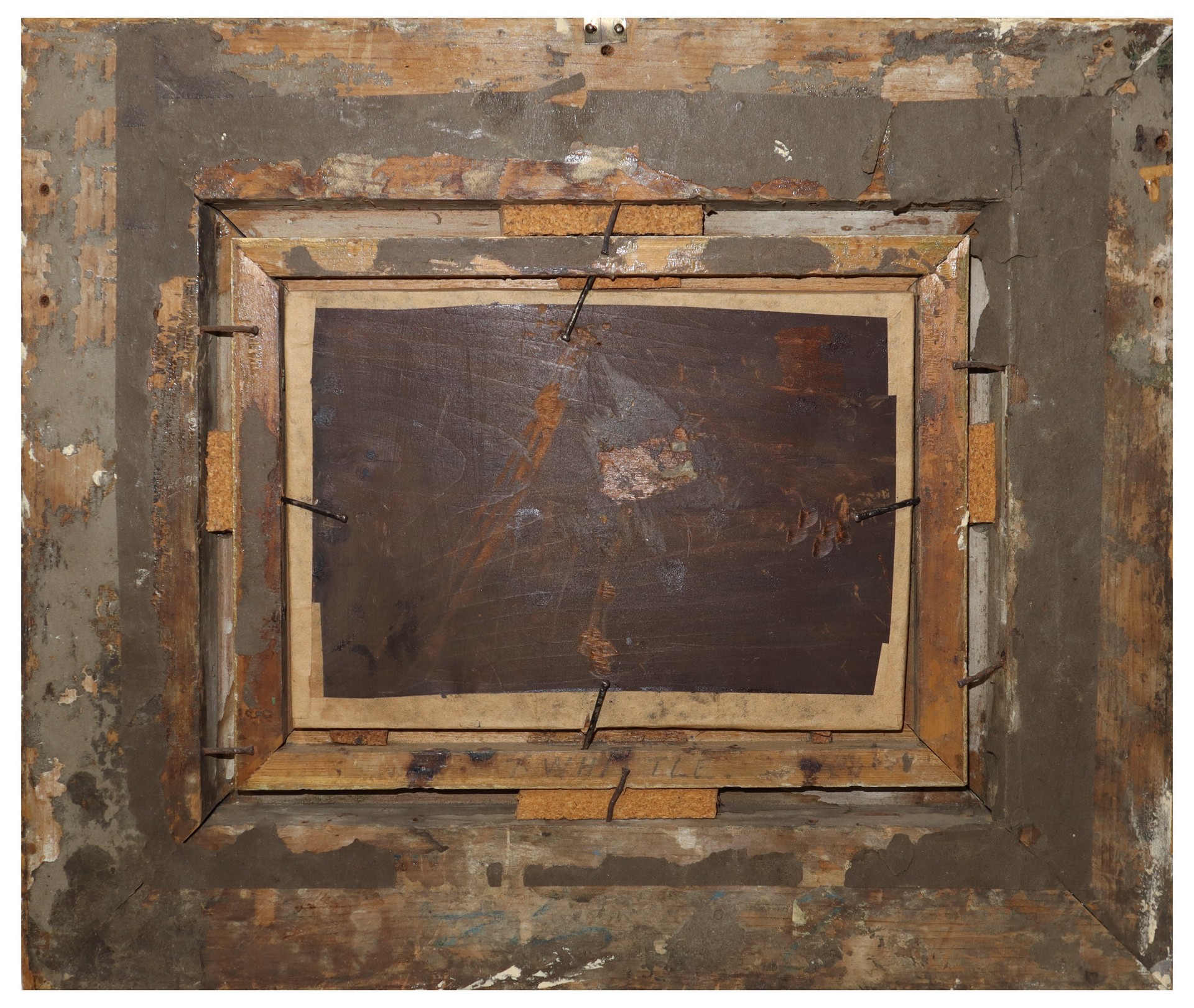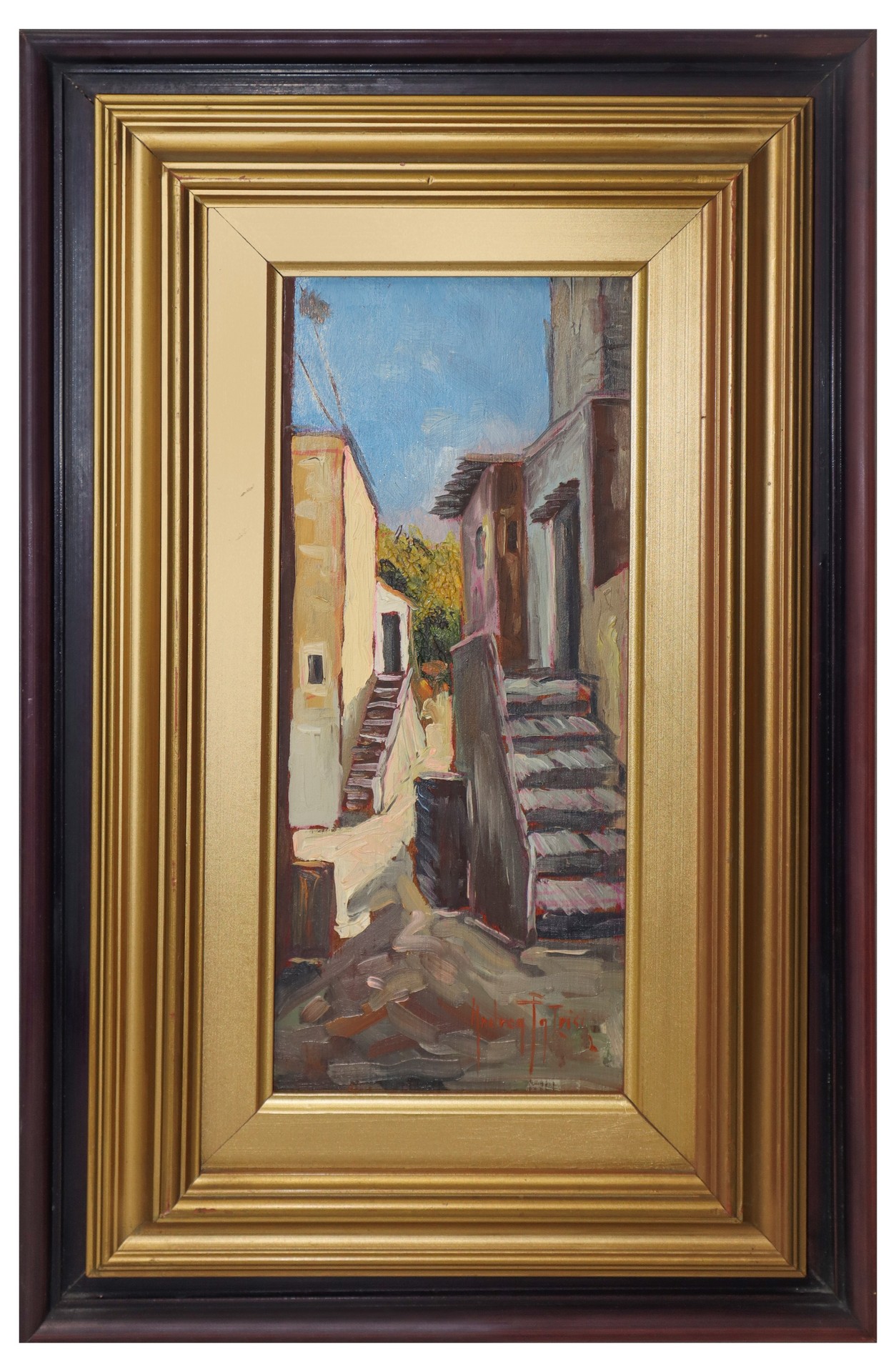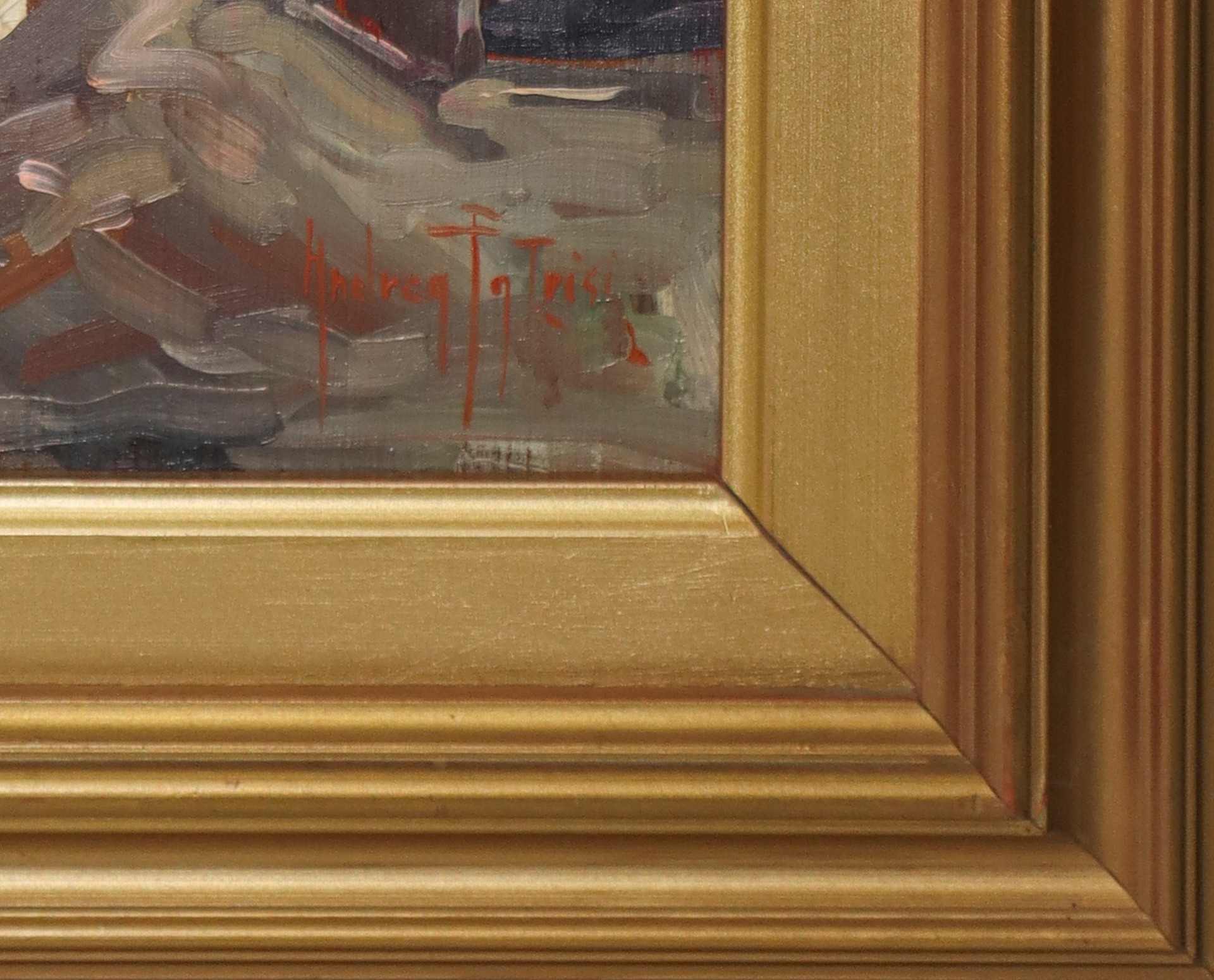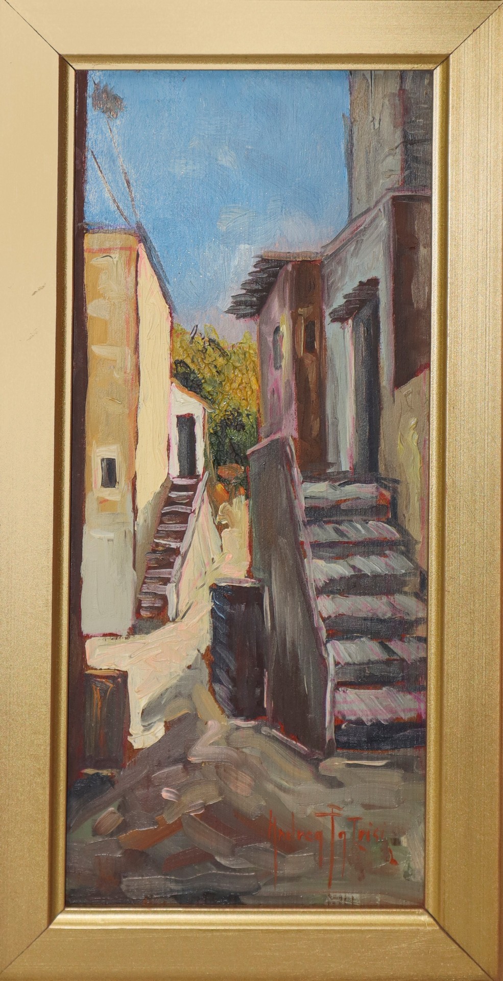 Andrea Patrisi (1954) - Case di paese cm 30x13; in cornice cm 48x31 olio su tavoletta Firmato in basso a destra