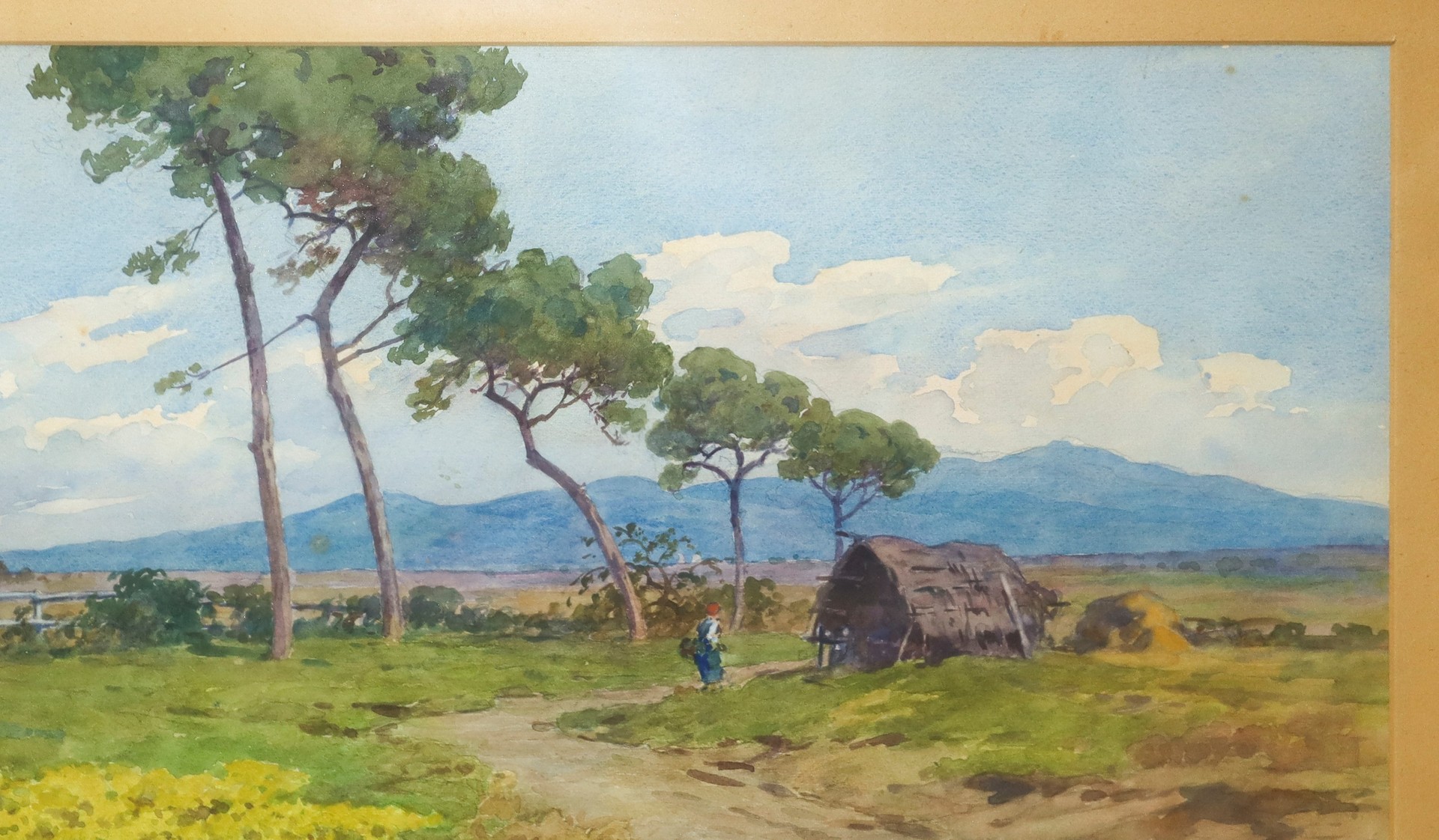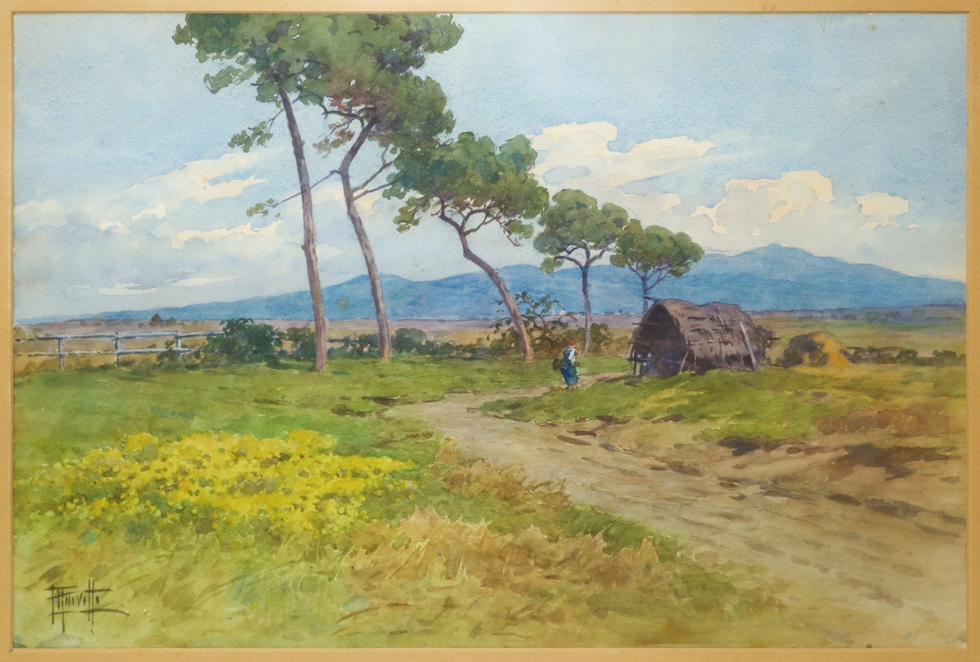 Paesaggio con alberi e capanna in campagna, Early 20° secolo Cm 39x59, incornice 55x75 Gouache su cartoncino Firmata in basso a sinistra.