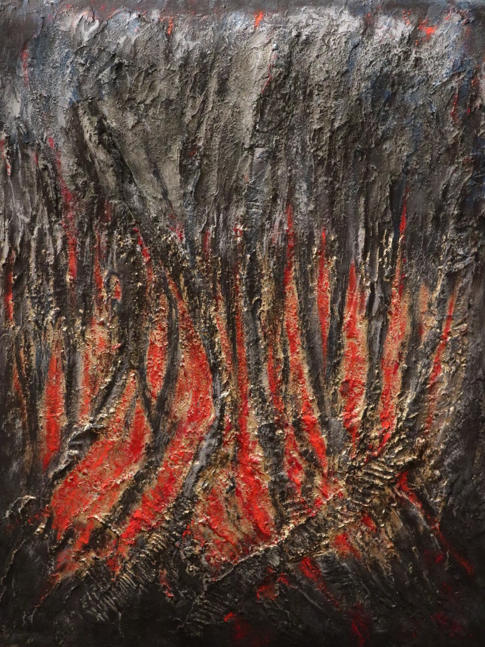 MATERIALE: Cemento, foglia oro, ossidi, acrilici su tela