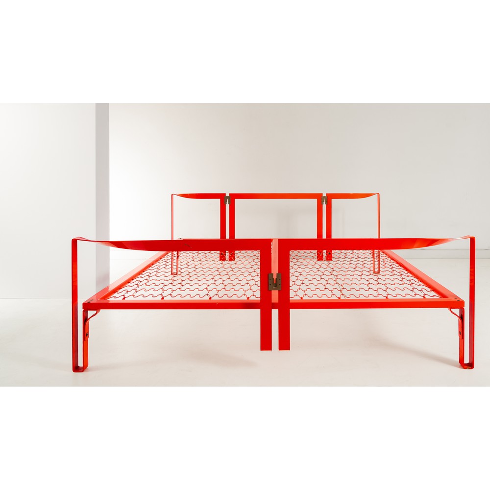 Letto matrimoniale modello “Vanessa”, struttura in metallo laccato rosso.