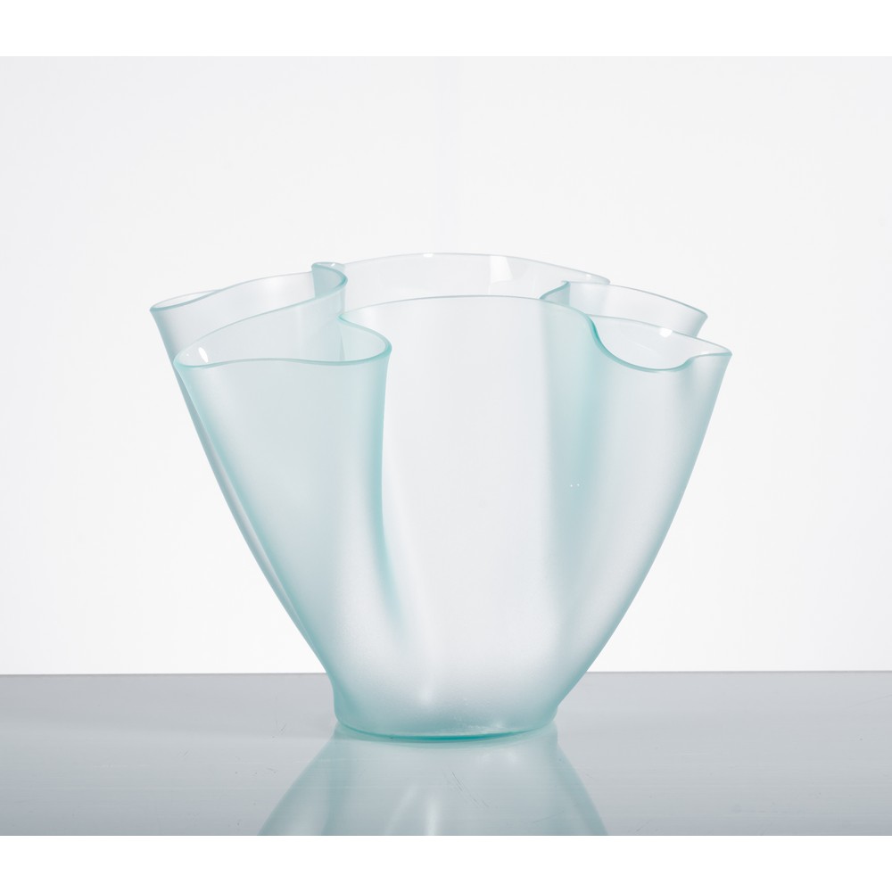 Vaso modello “Cartoccio-2029" in vetro satinato azzurrino curvato a caldo.