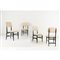 Quattro sedie con struttura in legno di mogano verniciato, seduta e spalliera rivestite in tessuto chiaro.