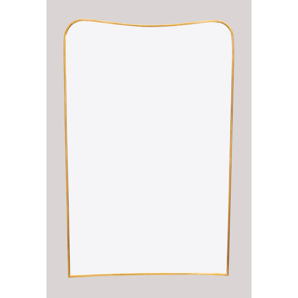 Specchio da parete, cornice in ottone e cristallo specchiato, corpo rettangolare curvato nella parte superiore.