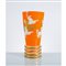 Grande Vaso modello “174" serie Cavalli in ceramica dipinta con figure in oro e bianco su fondo arancio, corpo conico con bocca circolare piana. Base a più tori oro. Firmato a graffito "SACRU-Rometti Umbertide" sotto la base (piccolo restauro alla base).