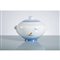 Zuppiera in ceramica bianca decorata con barca aerografata nei toni azzurro, marchio di produzione.