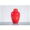 Vaso con coperchio della serie “Opachi” in vetro soffiato rosso con forme ispirate all’arte orientale. Firma incisa sotto la base. Etichetta sul fianco Venini Made in Italy.