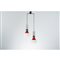 Lampada a sospensione modello "1247", a due elementi cilindrici in alluminio e metallo laccato nero e rosso, paralumi in vetro bianco “Triplex Opal” satinato.