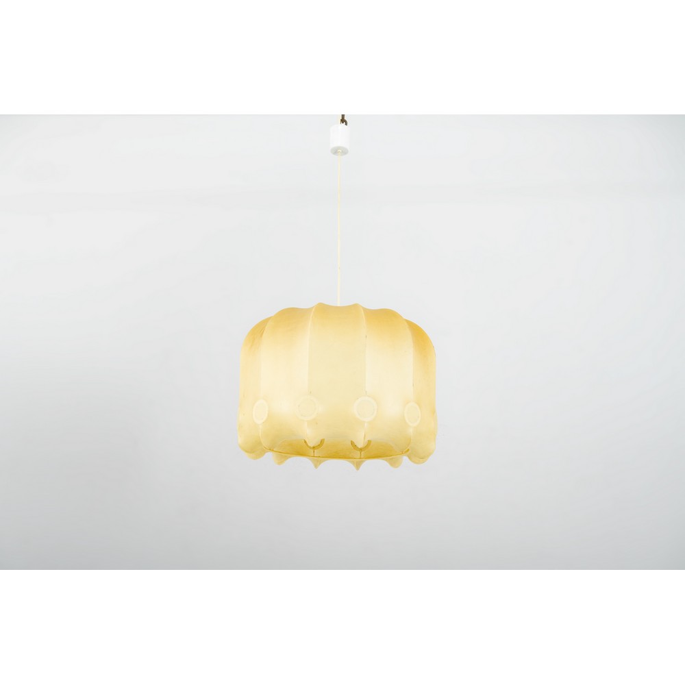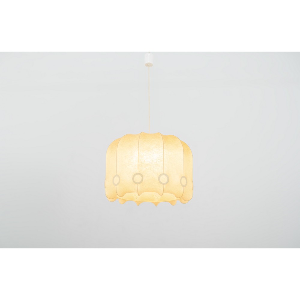 Lampada a sospensione ad una luce, struttura in metallo verniciato con rivestimento in cocoon.