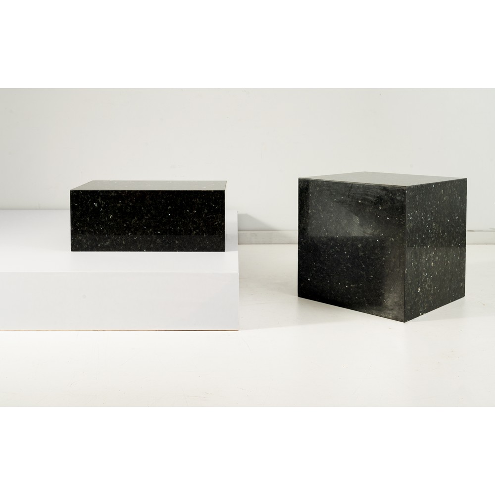 Due tavoli bassi uno quadrato e uno rettangolare in marmo granito nero.