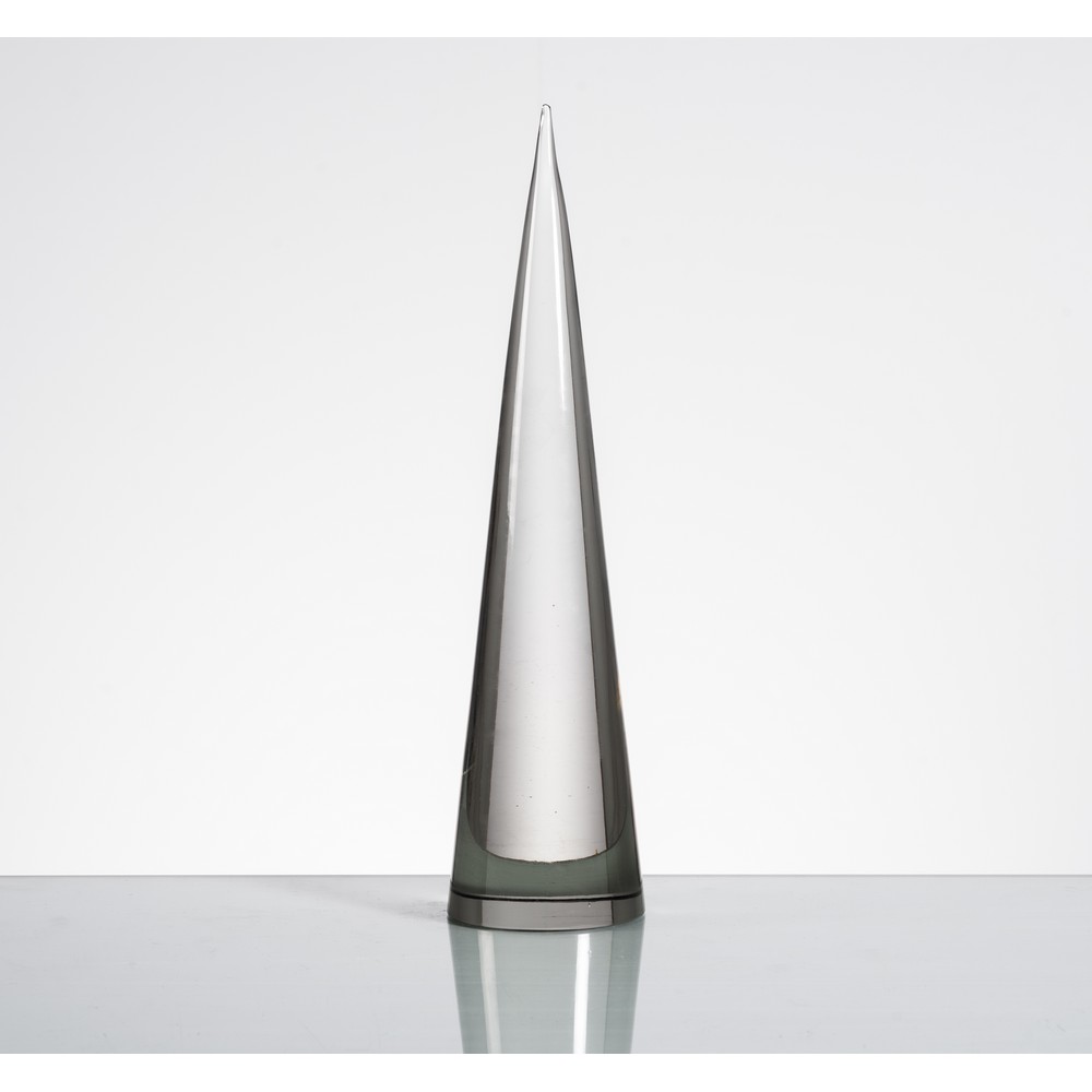 Grande cono in vetro massiccio incolore.