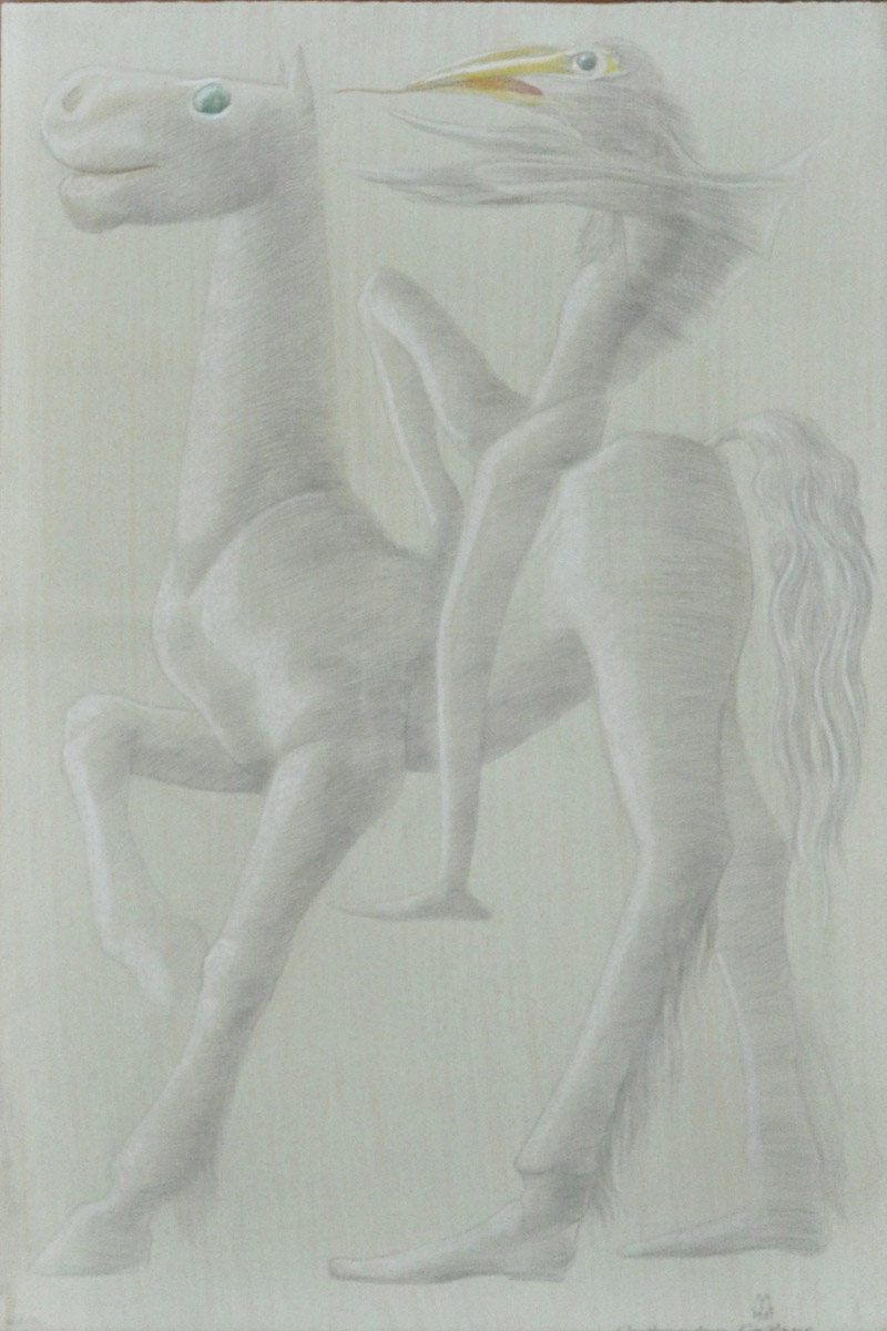 TOTERO ANTONIO Ornitomonstrum equitans, 1981 tecnica mista su cartoncino cm. 57x38 firma, data e titolo in basso a destra