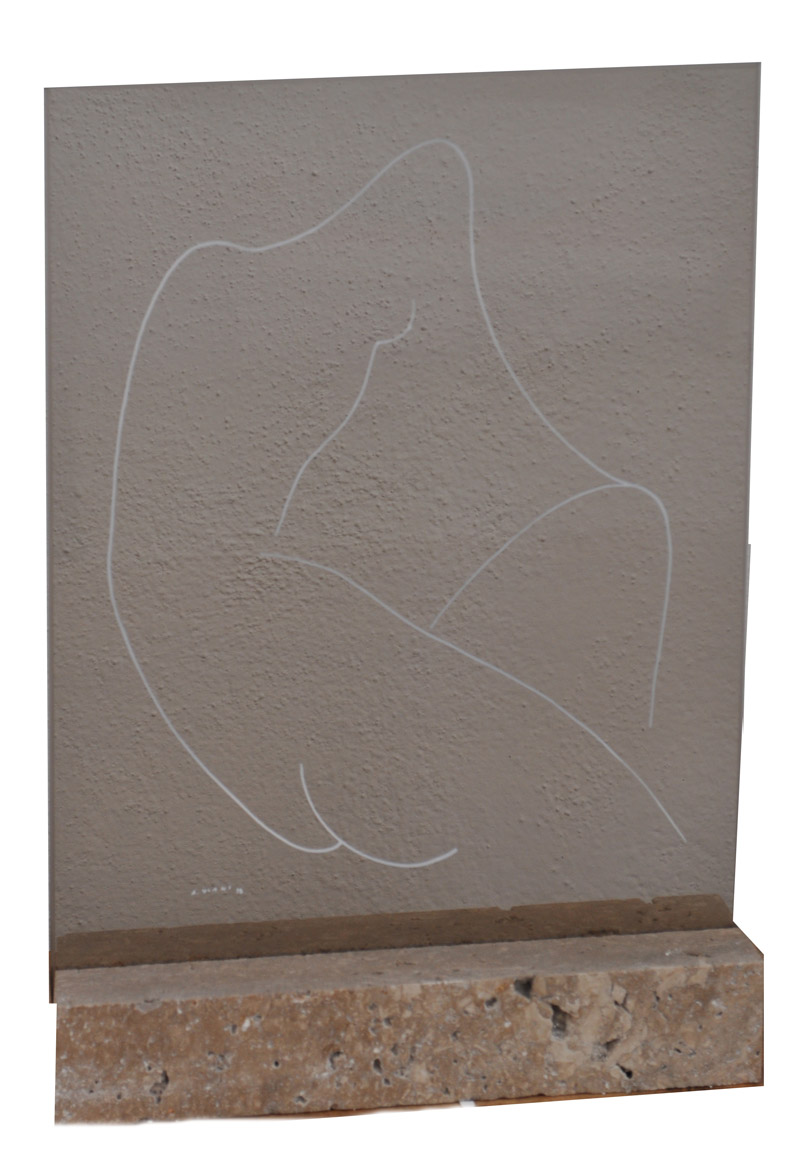 VIANI ALBERTO Maternità, 1978 serigrafia su cristallo con base in travertino cm. 33x23x7 tiratura di 100 es. non numerati firma e data in basso a sinistra editore Galleria Niccoli, Parma