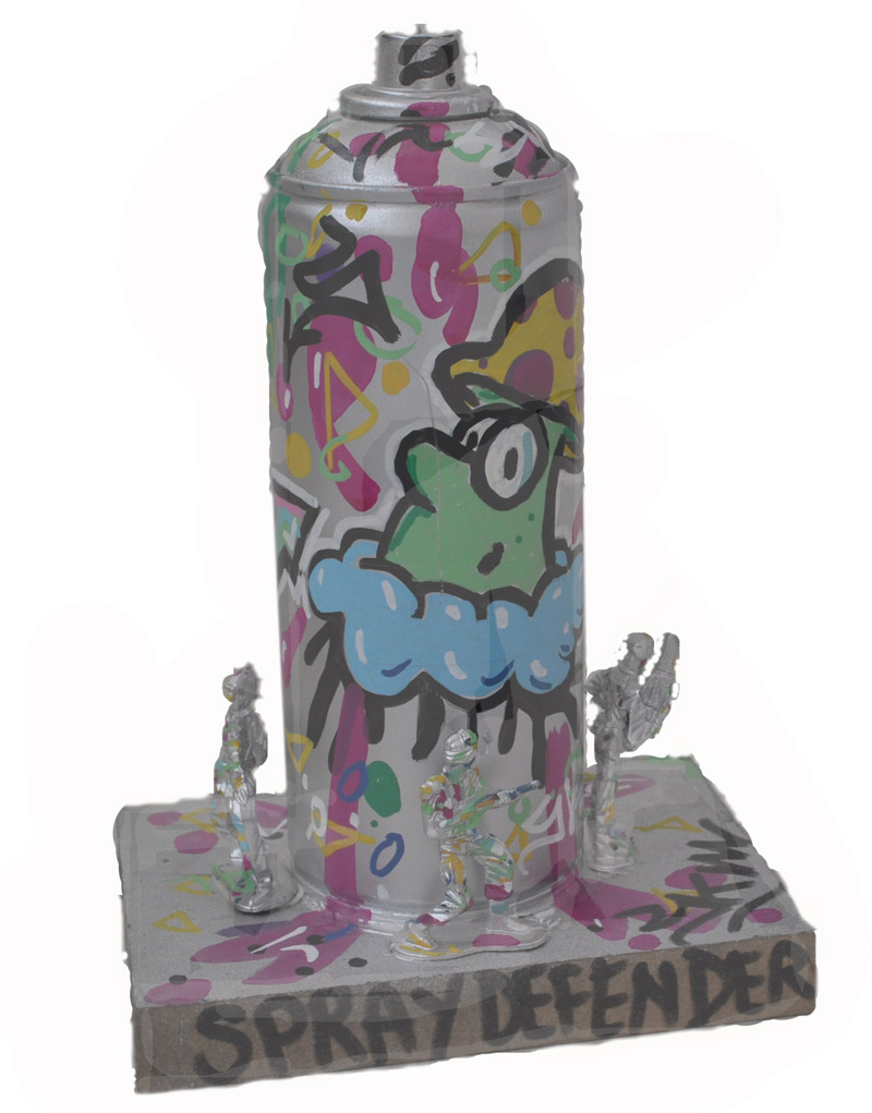 SKIM (Francesco Forconi) Spray Defender, 2013 pittura spray e assemblaggio su tavola cm. 20x14x10 firma, data e titolo sulla base