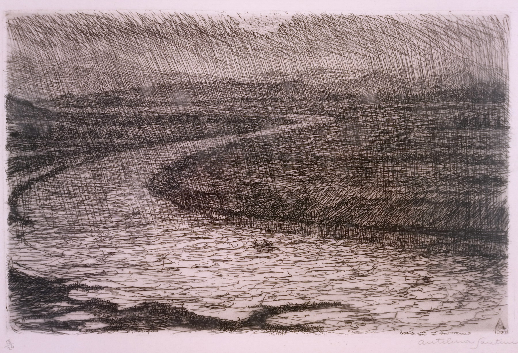 SANTINI ANTELMA Italia (it) 1896 Paesaggio Incisione su carta es. 18/24...