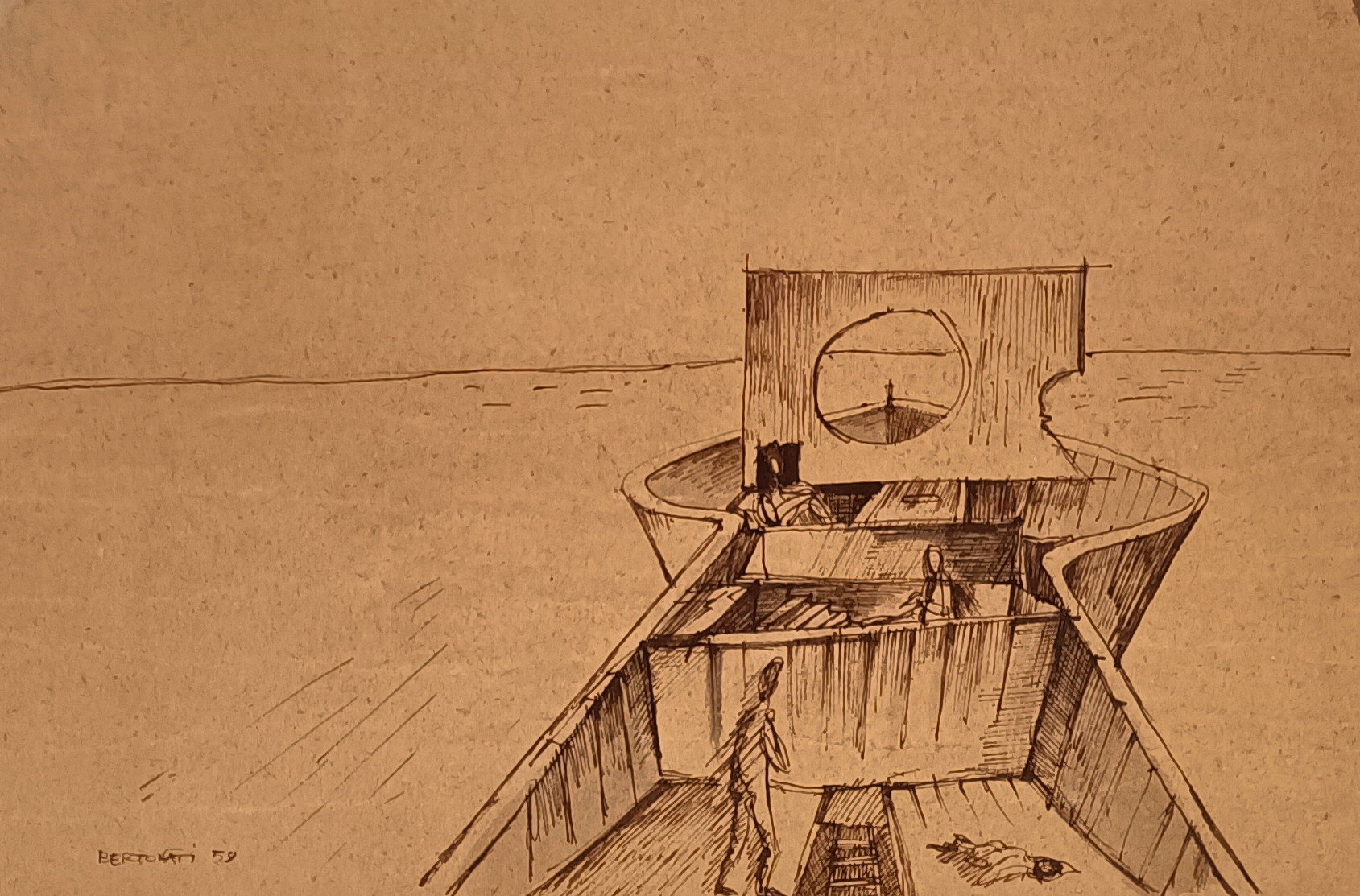 BERTONATI EMILIO Levanto (La Spezia) 1934 Bateau 1959 China su carta damasco...