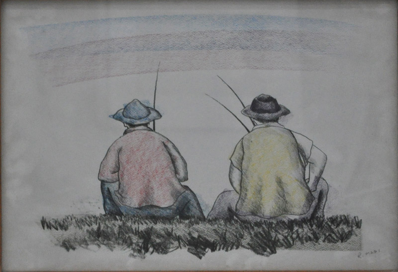 MASI ROBERTO Pescatori, 1978 pastelli su carta cm. 35x50 firma in basso a destra