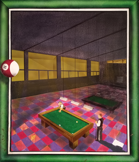 ANONIMO Anonimo (An) Biliardo Mista e collage su tavola 70,00x60,00...