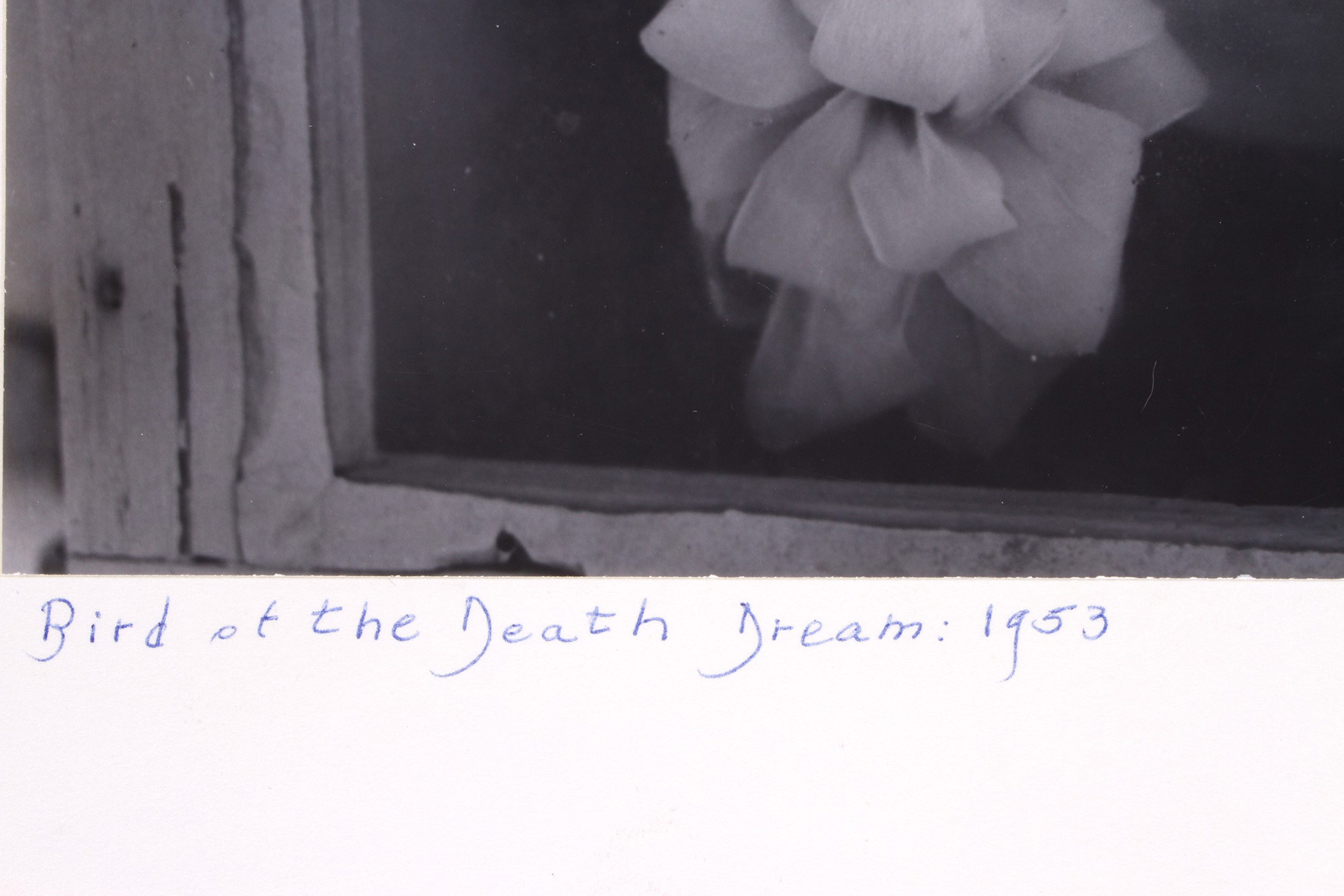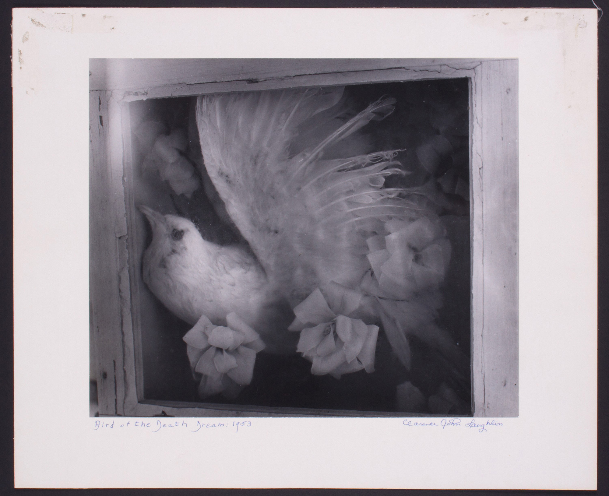 CLARENS JOHN LAUGHLIN (Louisiana, 1905-1985). Gelatin-silver print "BIRD OF THE DEATH DREAM: 1953". Signature lower right. Title lower left. Stamp "Print no. 36. Photograph Copyrighted 1973 by C:J: LAUGHLIN. All Reproduction Rights Reserved" on the back. 20x25 cm glued on cardboard 35x43 cm.