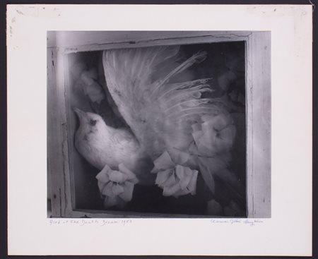 CLARENS JOHN LAUGHLIN (Louisiana, 1905-1985). Stampa alla gelatina d'argento "BIRD OF THE DEATH DREAM: 1953". Firma in basso a destra. Titolo in basso a sinistra. Timbro "Print no. 36. Photograph Copyrighted 1973 by C:J: LAUGHLIN. All Reproduction Rights Reserved" sul retro. 20x25 cm incollata su cartone 35x43 cm.