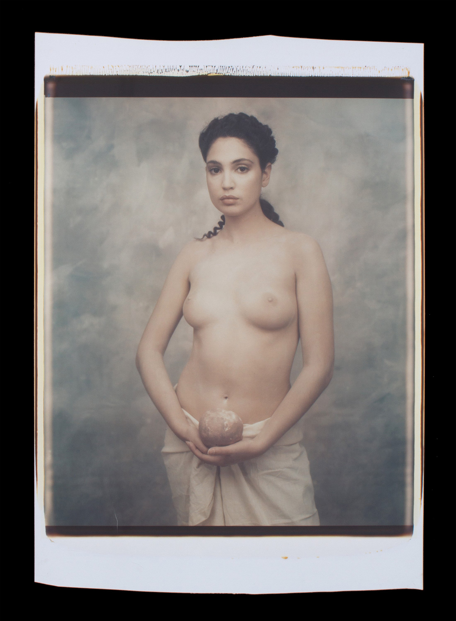 JOYCE TENNESON (Weston, 1945). Polaroid "DONNA CON MELOGRANO, 1987". Lieve piega in basso a sinistra. 60,5x52 cm. JOYCE TENNESON (Weston, 1945). Polaroid "DONNA CON MELOGRANO, 1987". Slight crease on the lower left. 60,5x52 cm