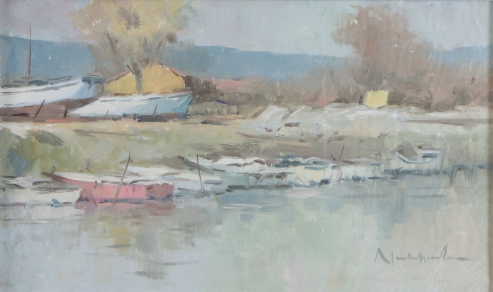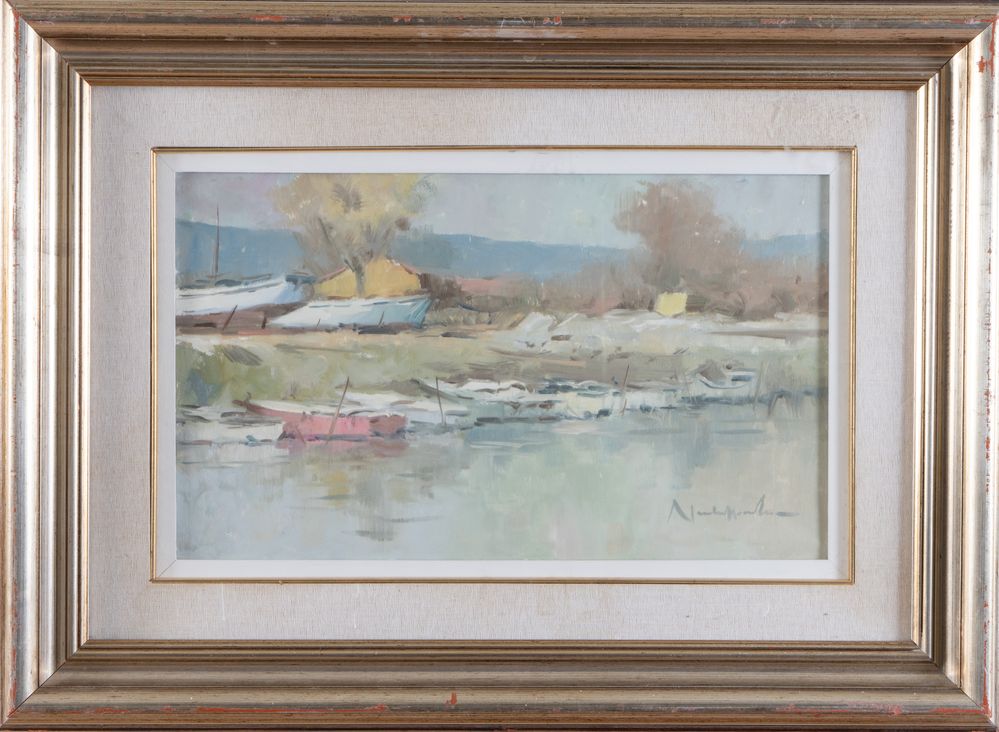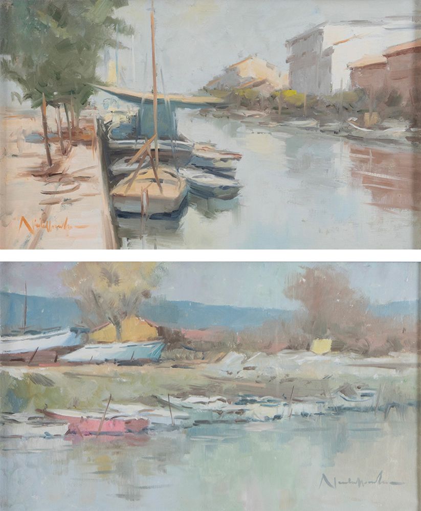 NICOLA SPONZA (Corfù 1914 - Trieste 1994) Coppia di marine. Olio su tela. Cadauna di cm 30x50. Opere firmate in basso Nicola Sponsa.