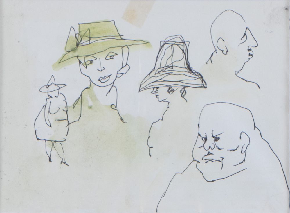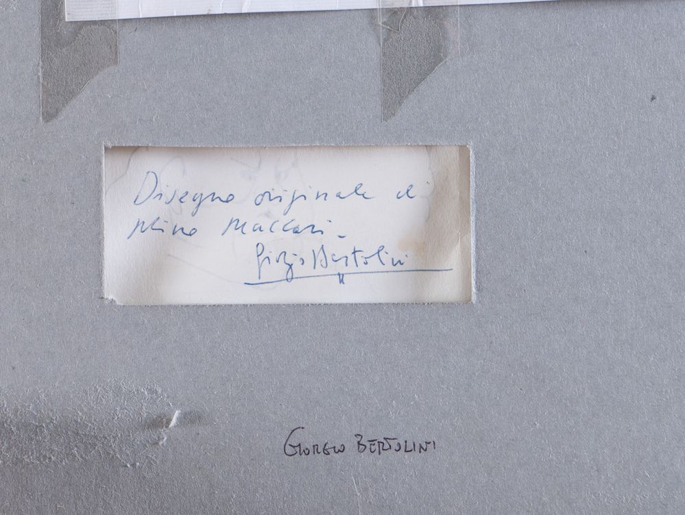 MINO MACCARI (Siena 1898 - Roma 1989) "Figure". Tecnica mista su carta. Cm 14,5x19,5. Al retro reca scritta Disegno originale di Mino Maccari a firma Giorgio Bertolini.